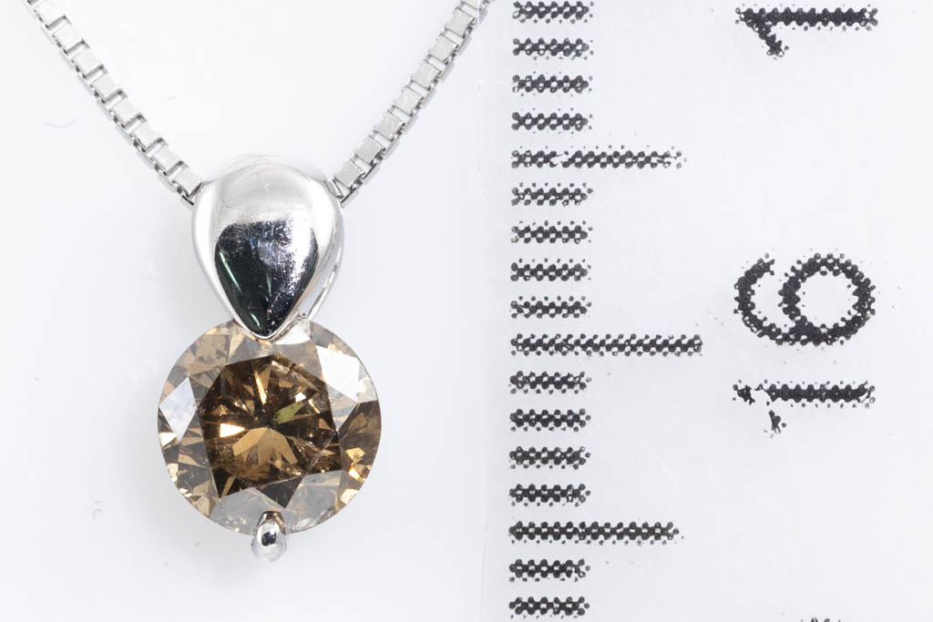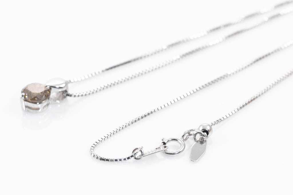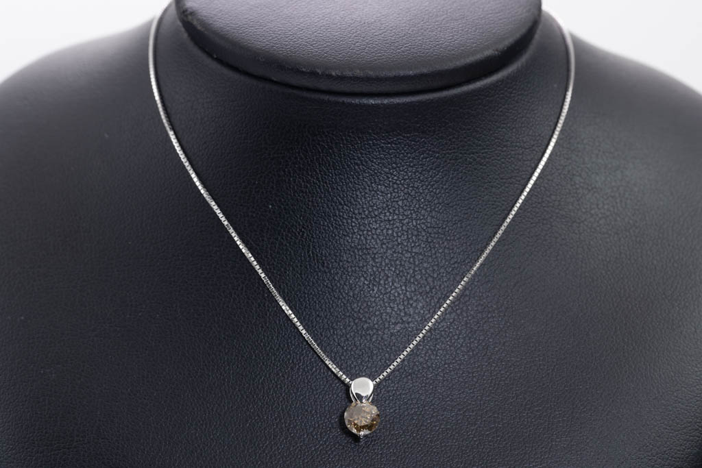 Diamond solitaire pendant with round Diamond of 0.70ct (Estimated grading: Cognac P1). 18ct white gold with 45cm 18ct white gold adjustable chain. Weight: 3.5g (Pre-owned)