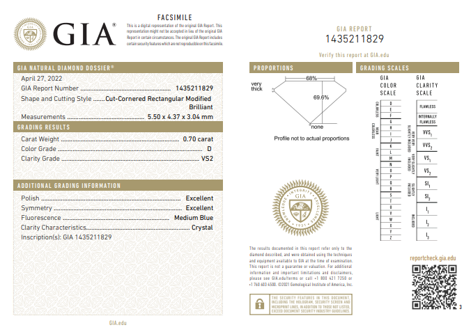 A loose radiant cut Diamond of 0.70ct (With GIA summary report graded as D VS2 #1435211829
