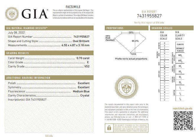 A loose oval shape Diamond of 0.70ct (With GIA summary report graded as E VS2 #7431955827