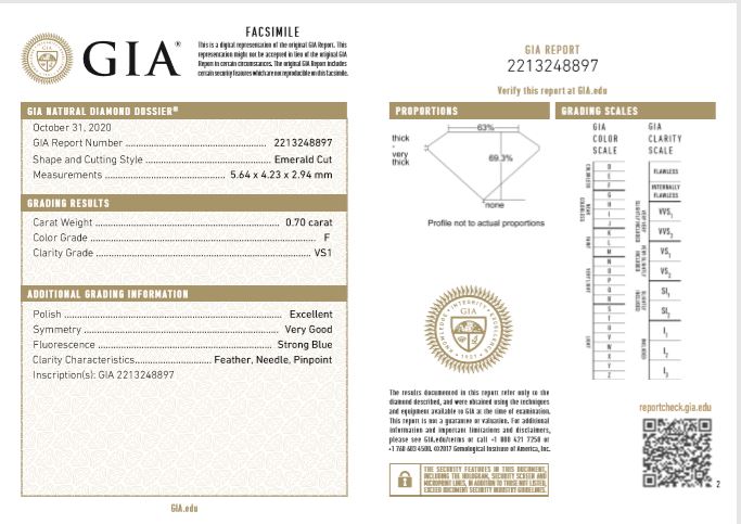 A loose Emerald Cut Diamond of 0.70ct (with GIA report graded as F VS1 #2213248897). (New)