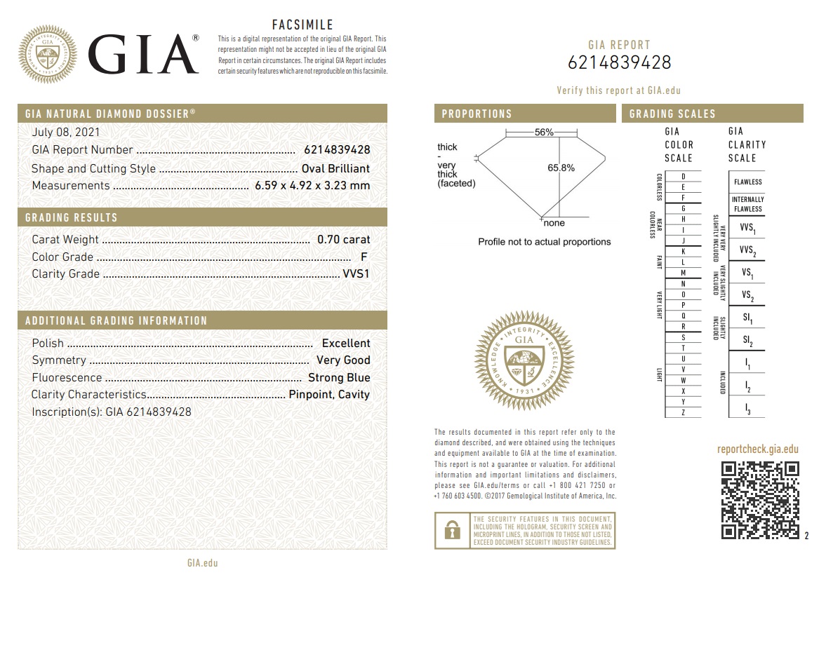 A loose oval Diamond of 0.70ct (With GIA summary report graded as F VVS1 #6214839428). (New)