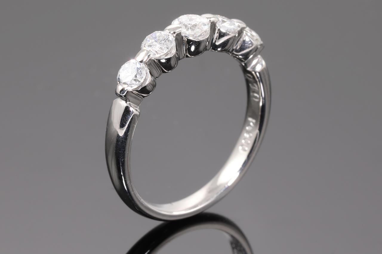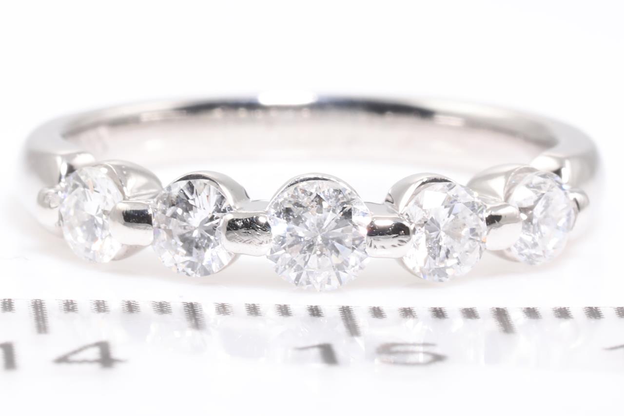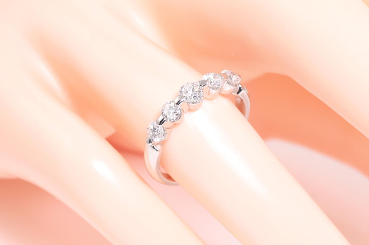 Diamond eternity ring with 5 Round Diamonds totalling 0.70cts (Estimated grading: F-G P1). Platinum, ring size L. Weight 4.8g.(Pre-owned)