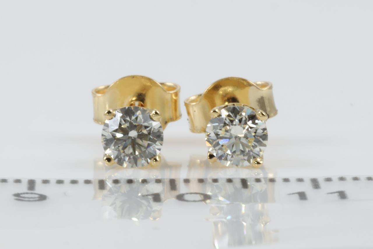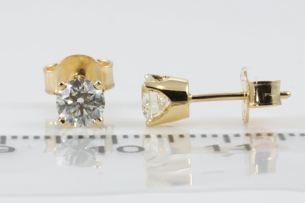 Diamond stud earrings with 2 round Diamonds totalling 0.71cts (Estimated grading: K-L SI). 18ct yellow gold. Weight: 1.5g. (New)