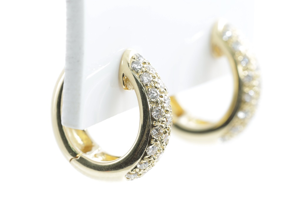 Diamond huggie earrings with round Diamonds totalling 0.72cts (Estimated grading: H VS). 18ct yellow gold. Weight: 7.3g. (Pre-owned)