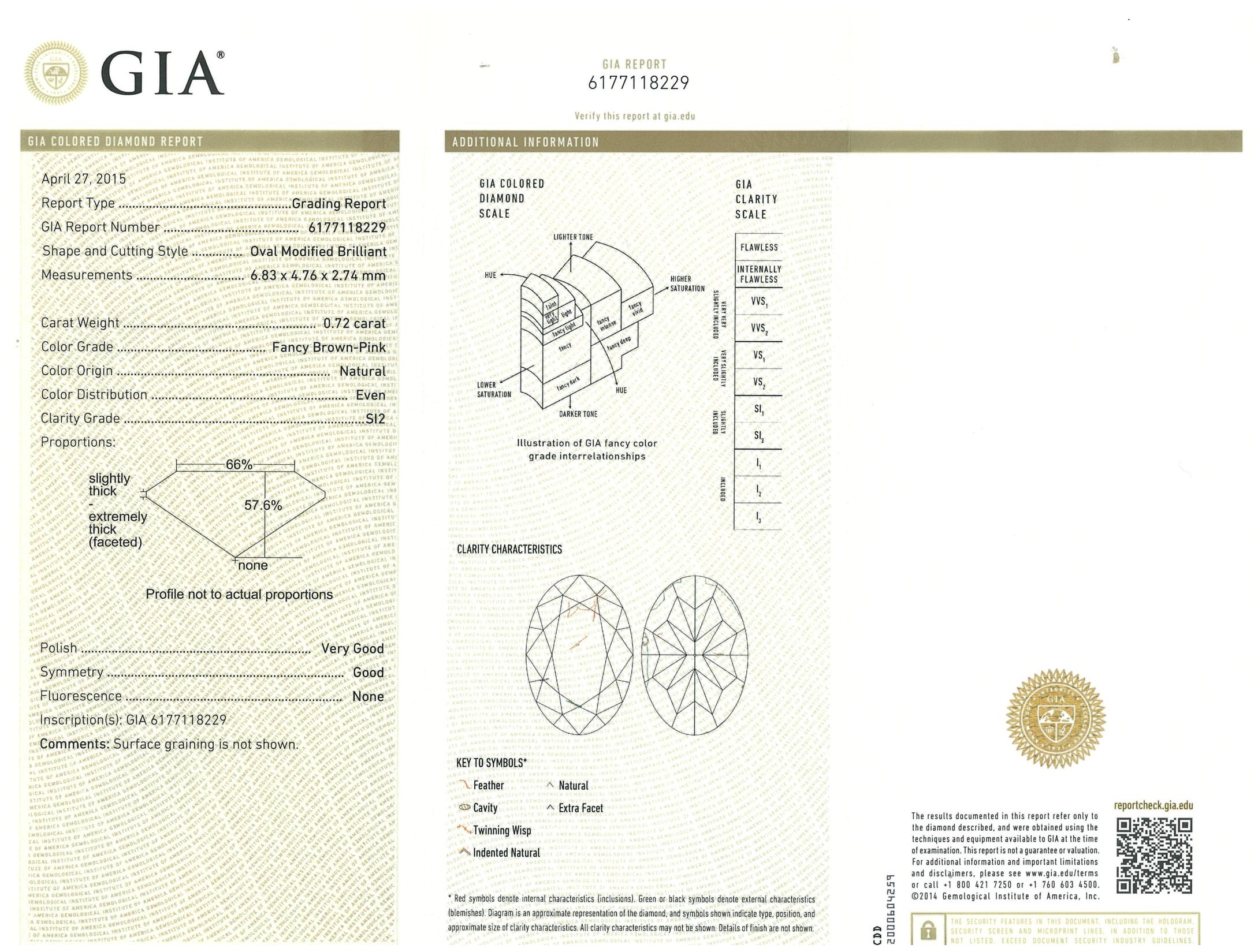 A loose oval cut Diamond of 0.72ct (with GIA report graded Fancy Brown-Pink SI2 #6177118229) (Pre-owned)