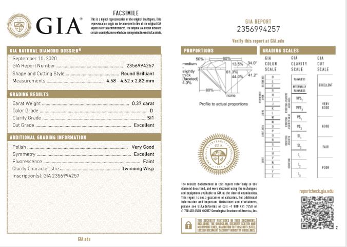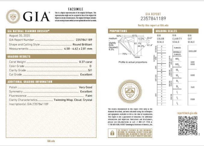 A loose pair of Round Brilliant Cut Diamonds totalling 0.74cts (with GIA report both graded as D SI1 #2356994257, 2357841189). (New)