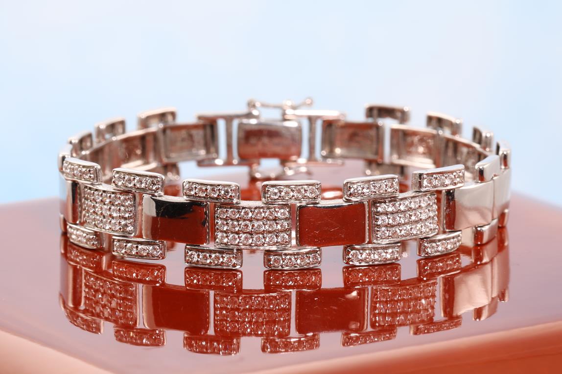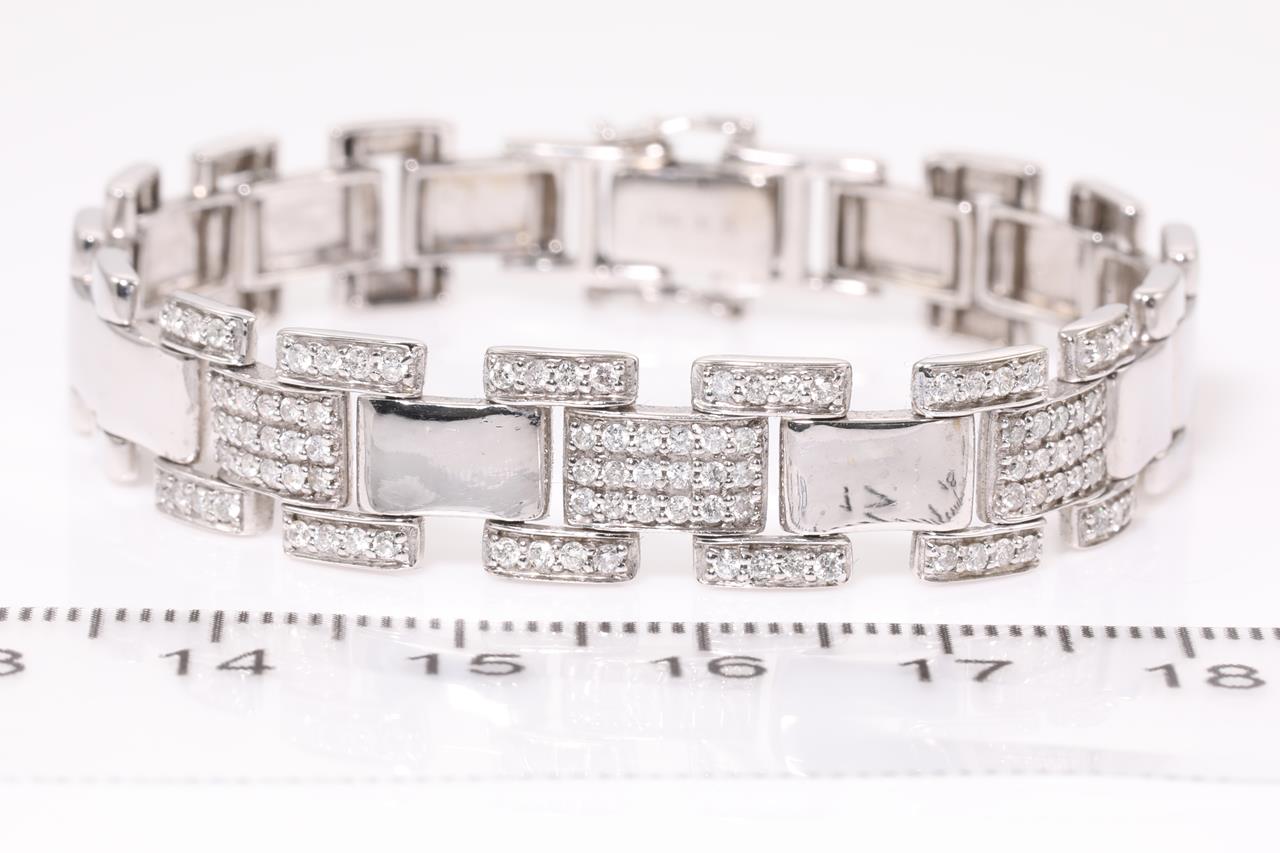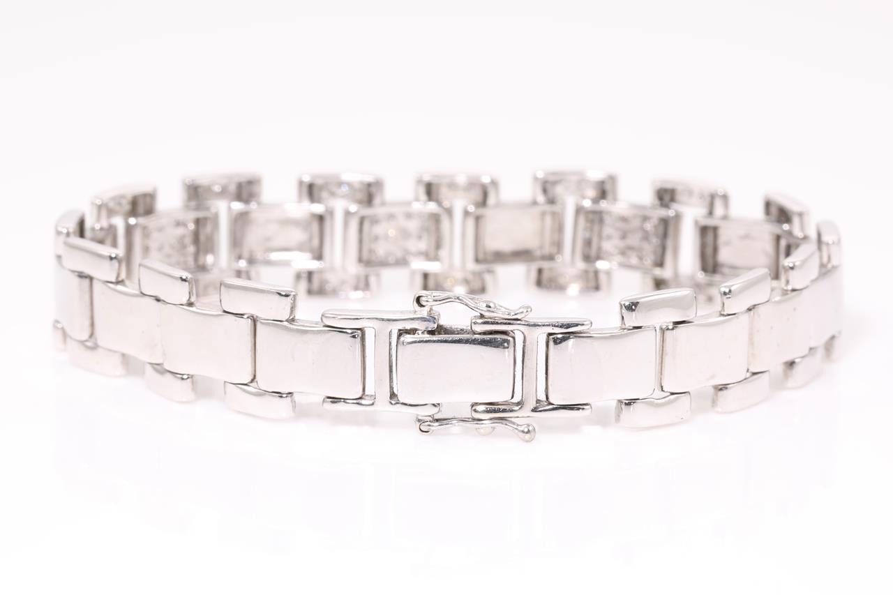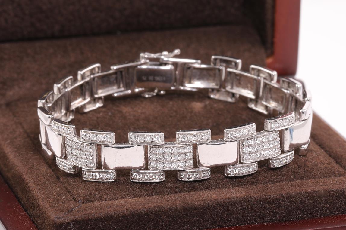 Diamond bracelet with round Diamonds totalling 0.75cts (Estimated grading: H P1). 18ct white gold. Length: 15cm. Weight: 17.0g (Pre-owned)