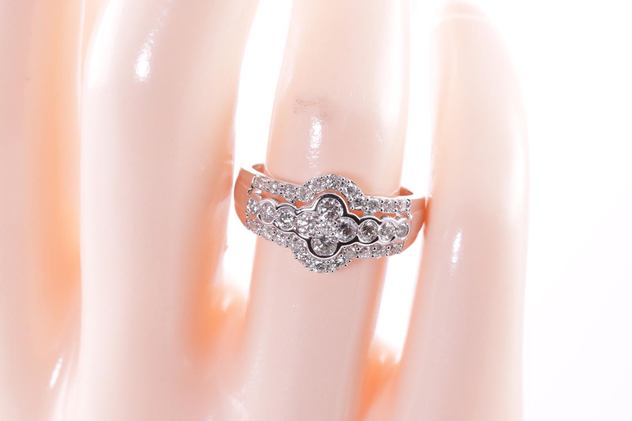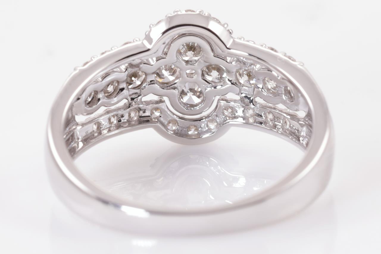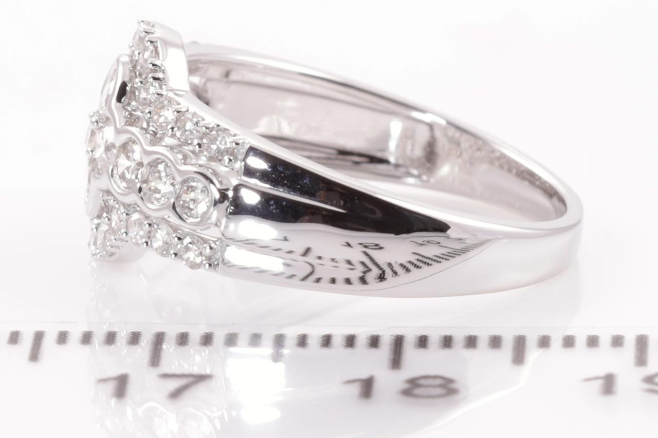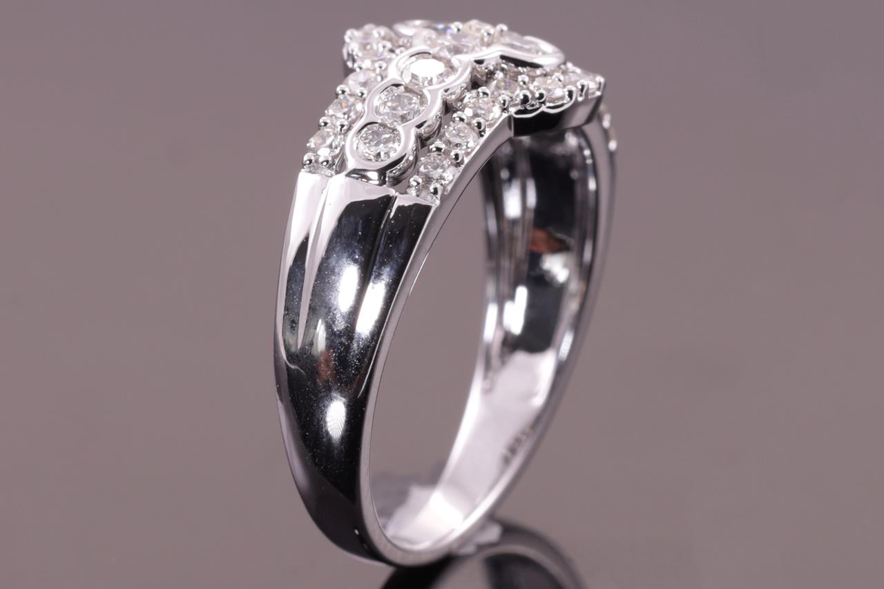 Diamond dress ring with round Diamonds totalling 0.75cts (Estimated grading: H SI). 14ct white gold. Size: M. Weight: 3.1g. (New)