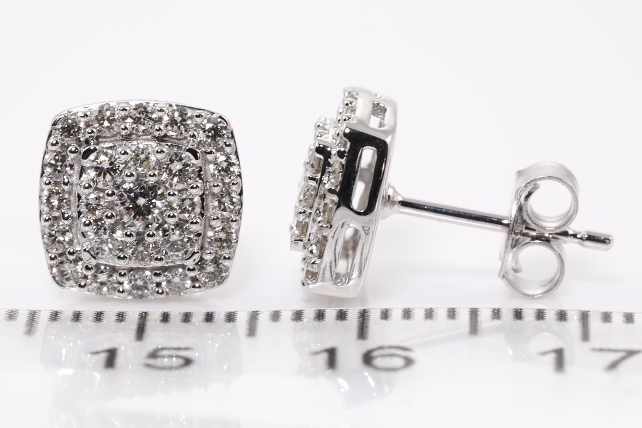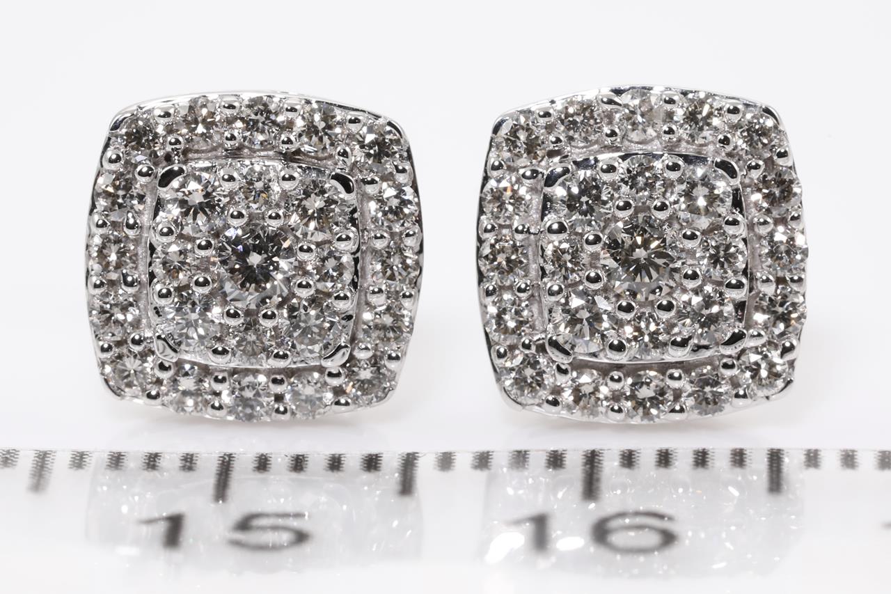 Diamond earrings with round Diamonds totalling 0.75cts (Estimated grading: H SI). 14ct white gold. Weight: 2.7g. (New)