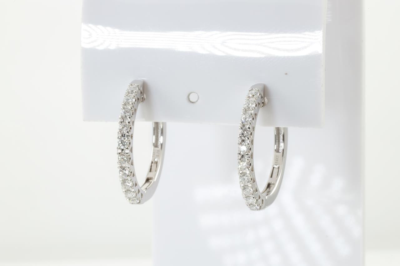 Diamond hoop earrings with round Diamonds totalling 0.75cts (Estimated grading: H SI). 14ct White gold. Weight: 5.7g (New)