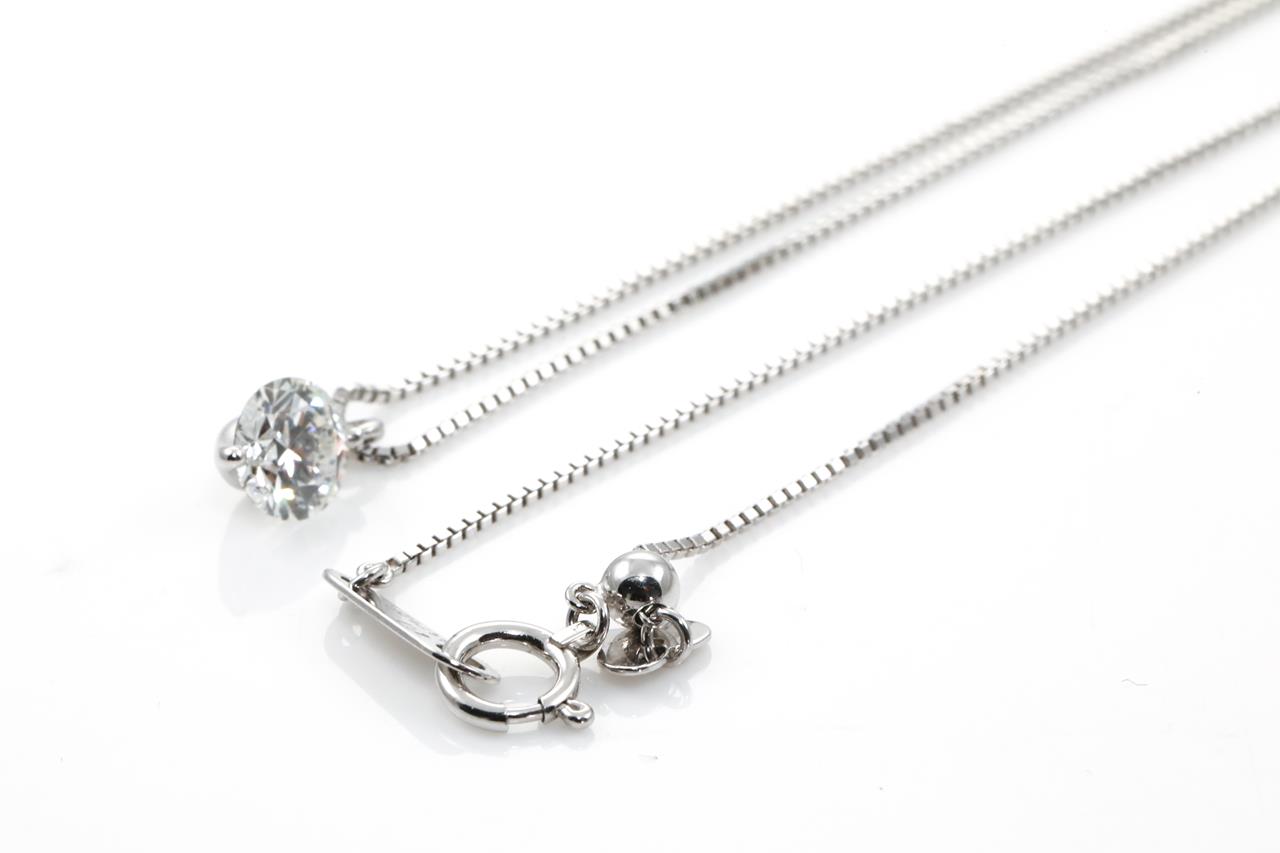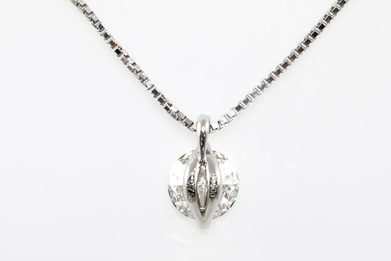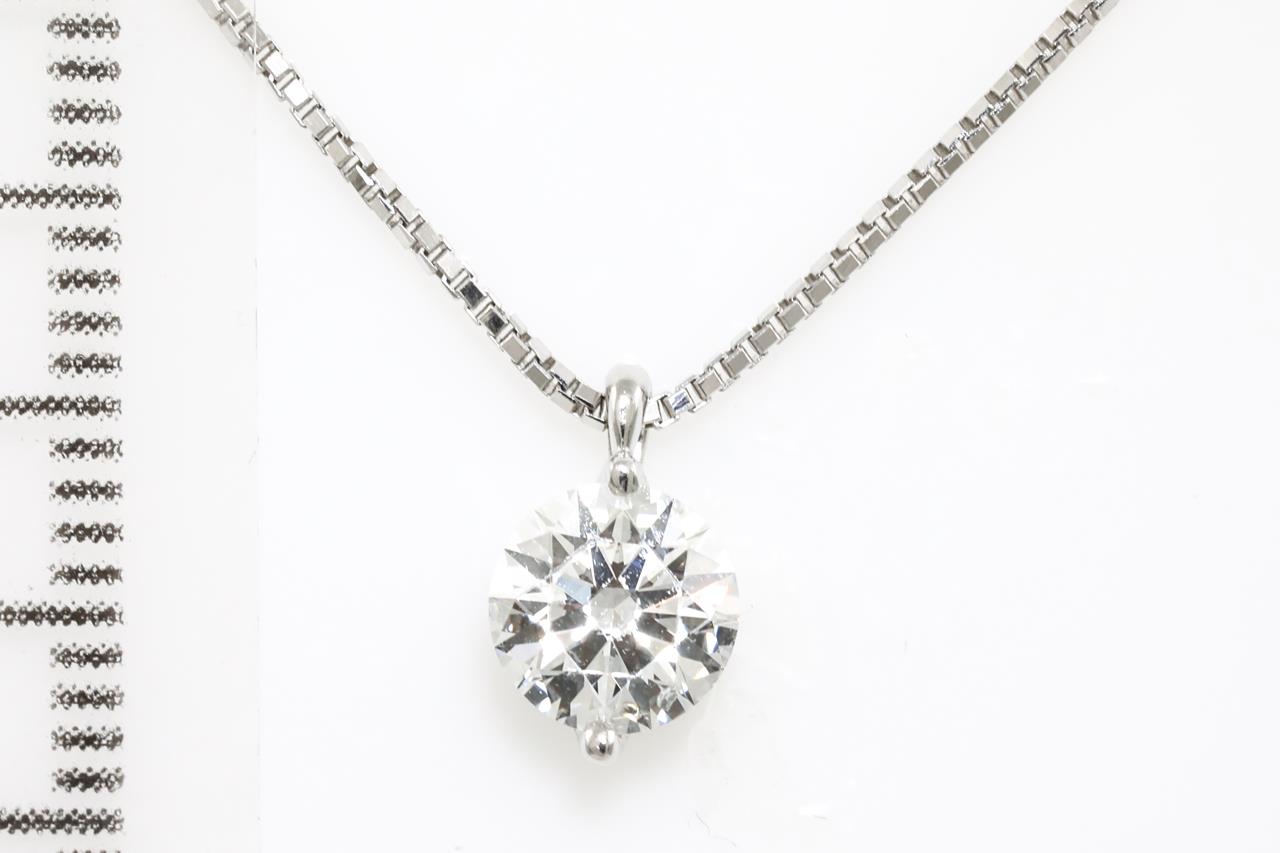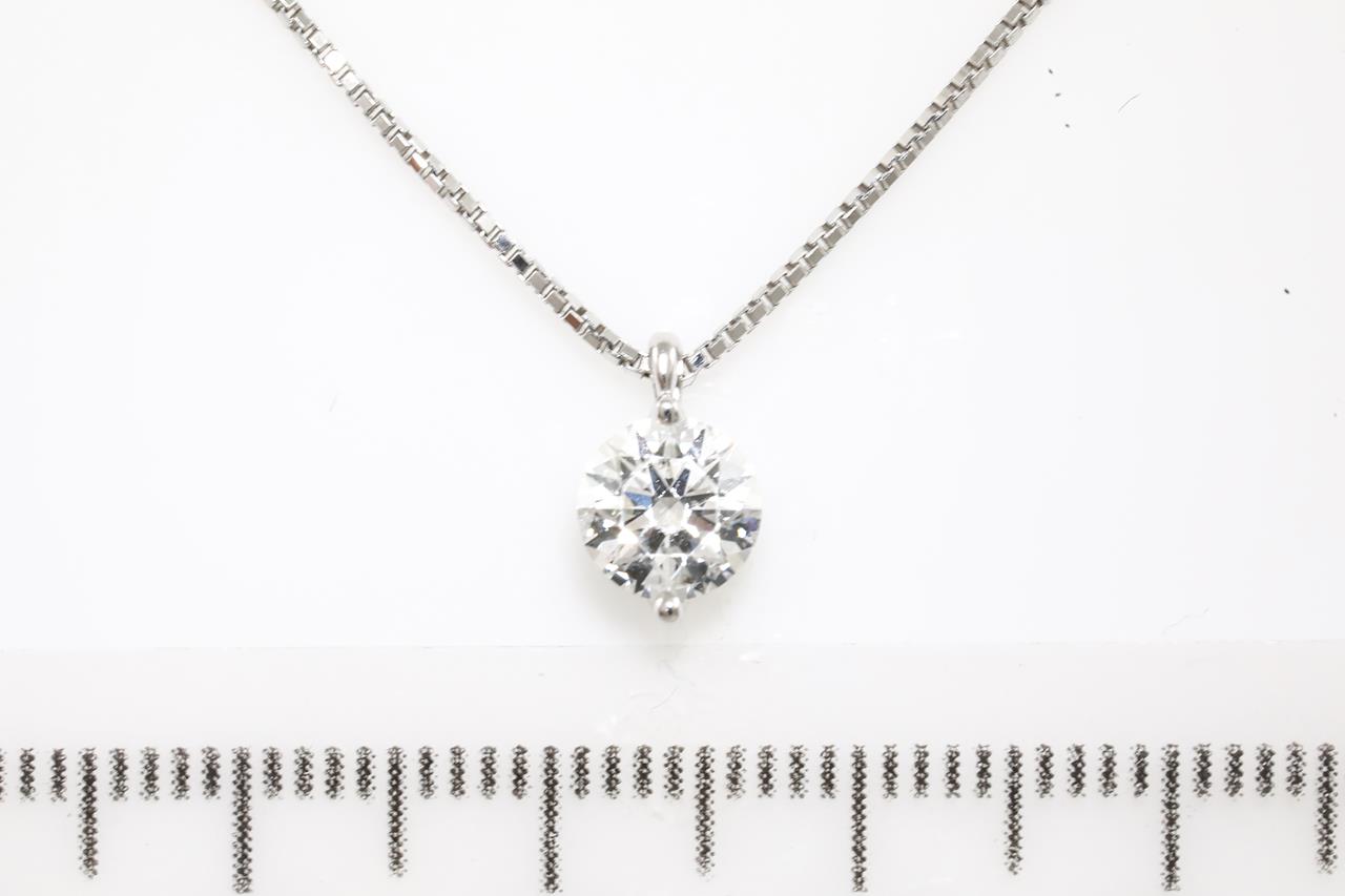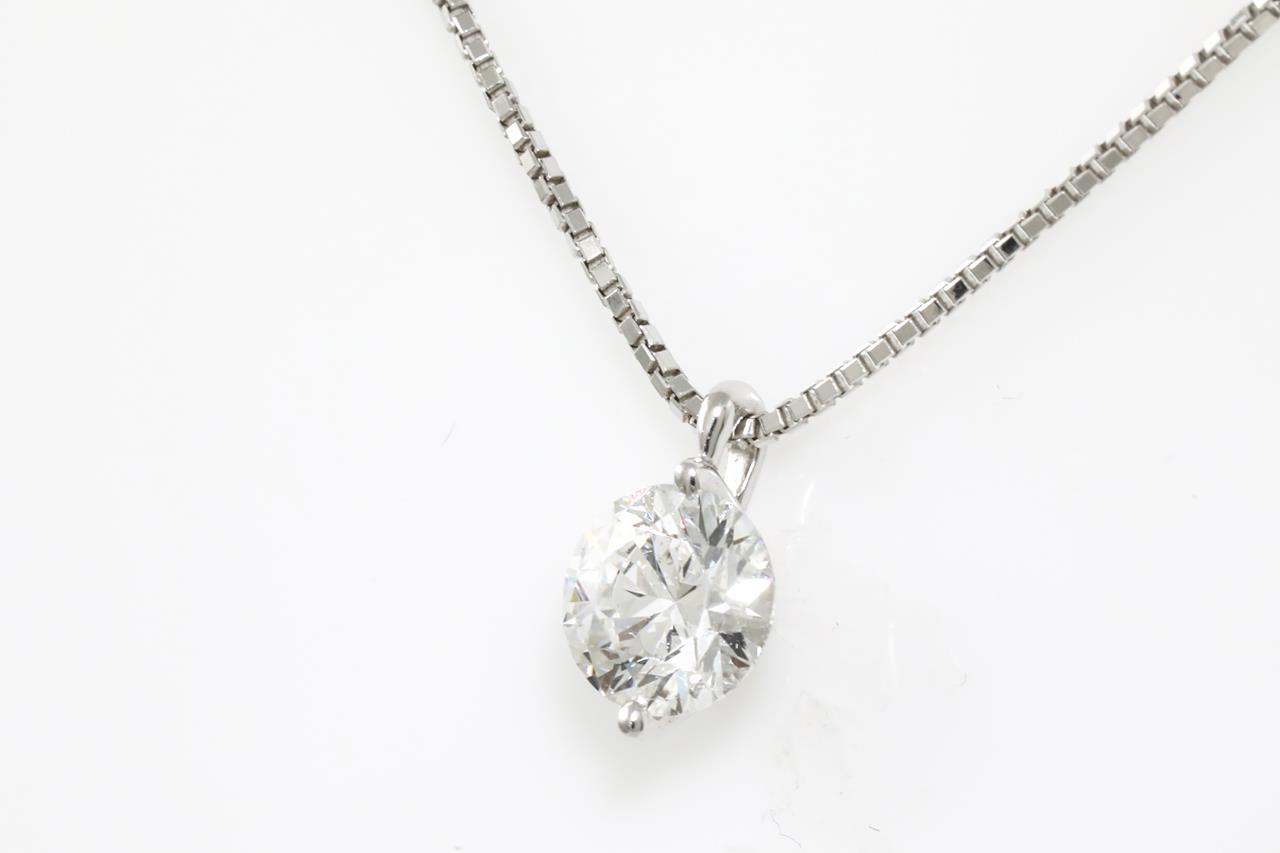 Diamond solitaire pendant with round Diamond of 0.75ct (Estimated grading: G SI2). Platinum with adjustable 44cm chain. Weight: 3.4g. (Pre-owned)