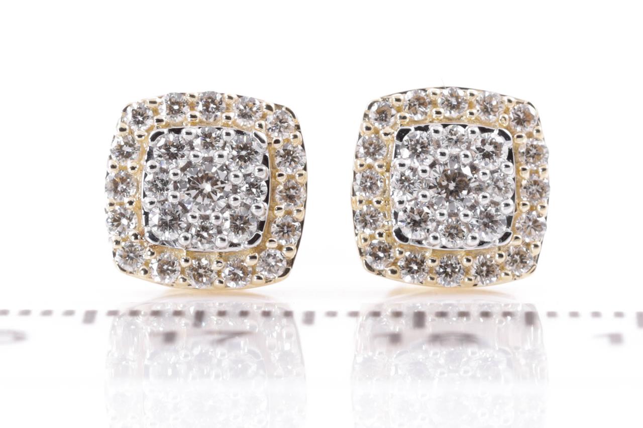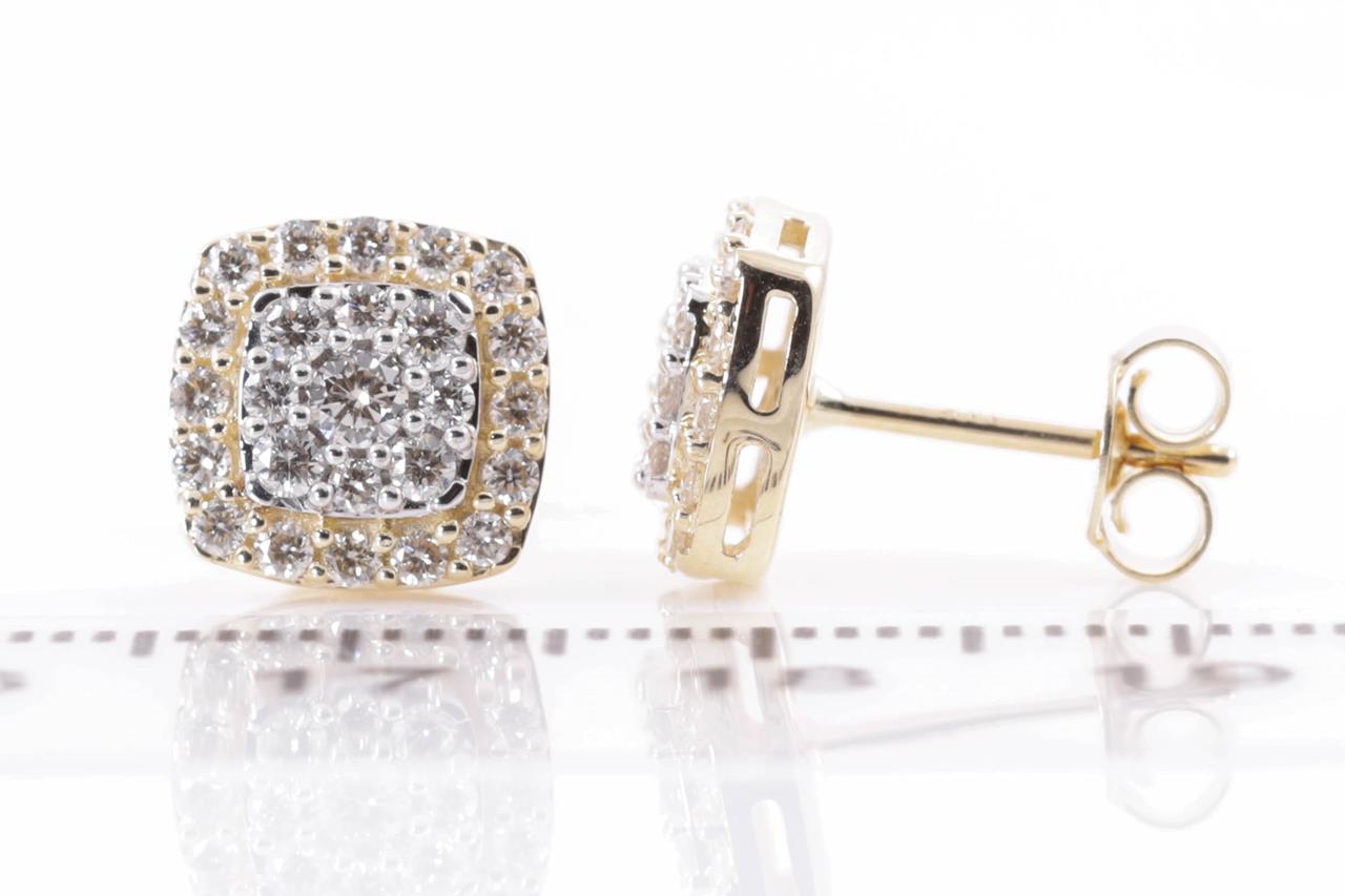 Diamond stud earrings with round Diamonds totalling 0.75cts (Estimated grading: H SI). 14ct yellow and white gold. Weight: 2.7g. (New)