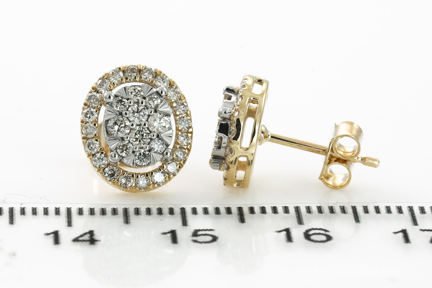Diamond earrings with 60 round Diamonds totalling 0.76cts (Estimated grading: H SI). 14ct yellow & white gold. Weight: 2.8g. (New)