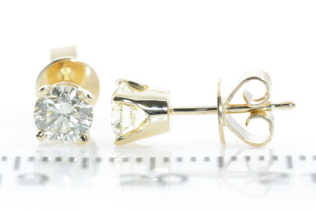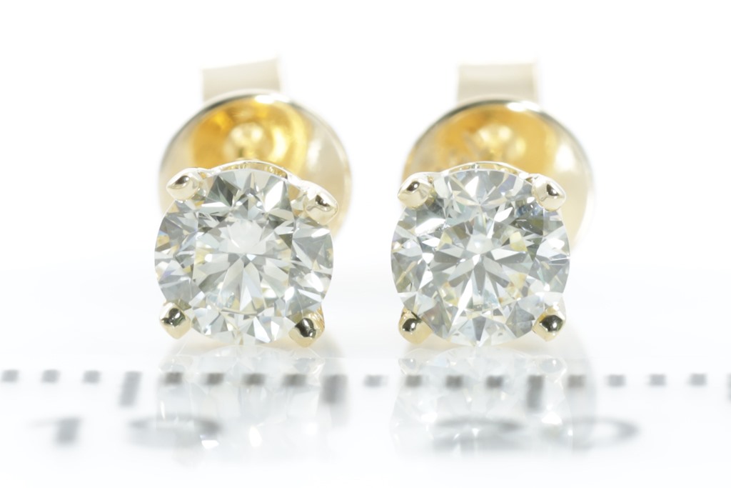 Diamond stud earrings with 2 round Diamonds totalling 0.76cts (Estimated grading: L VS-SI). 18ct yellow gold. Weight: 1.3g. (New)
