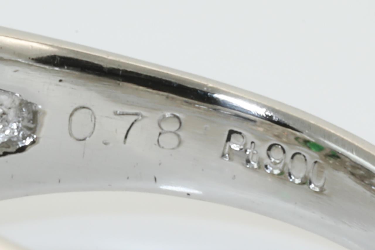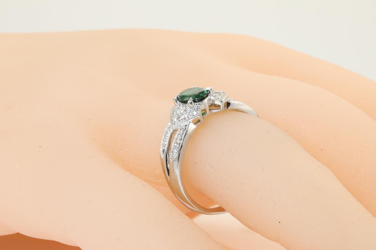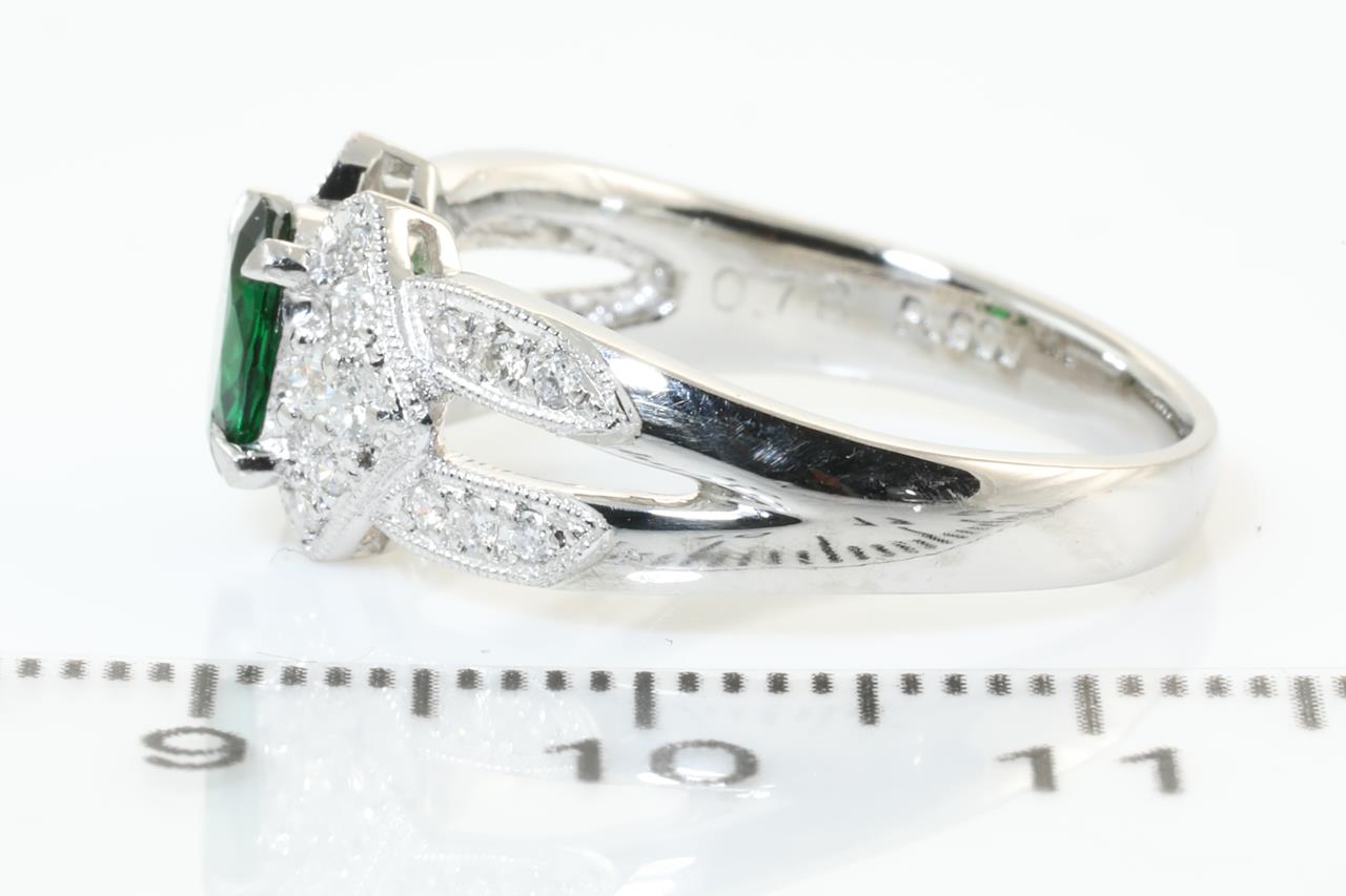 Tsavorite and Diamond ring with oval cut Tsavorite of 0.78ct and Diamonds totalling 0.25cts. Platinum. Ring size: P. Weight: 6.8g (Pre-owned)