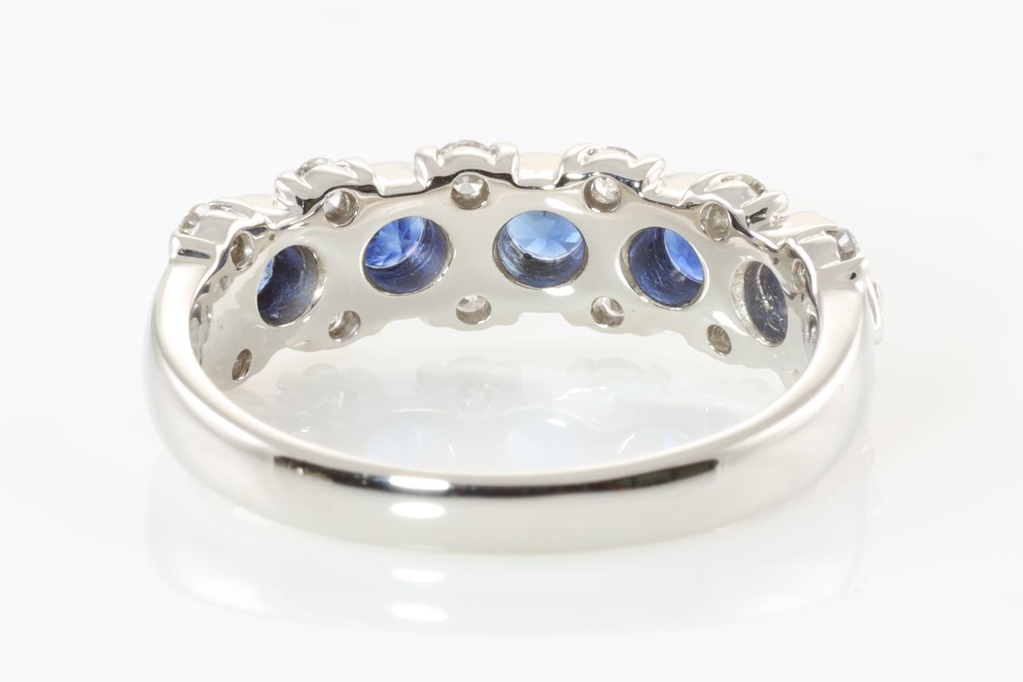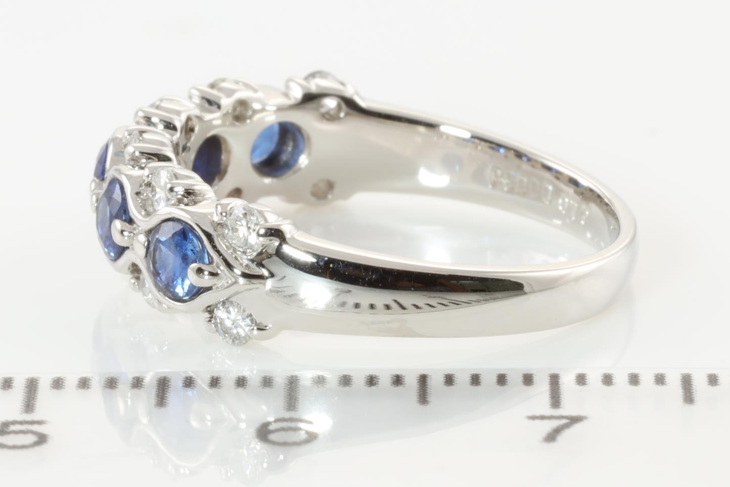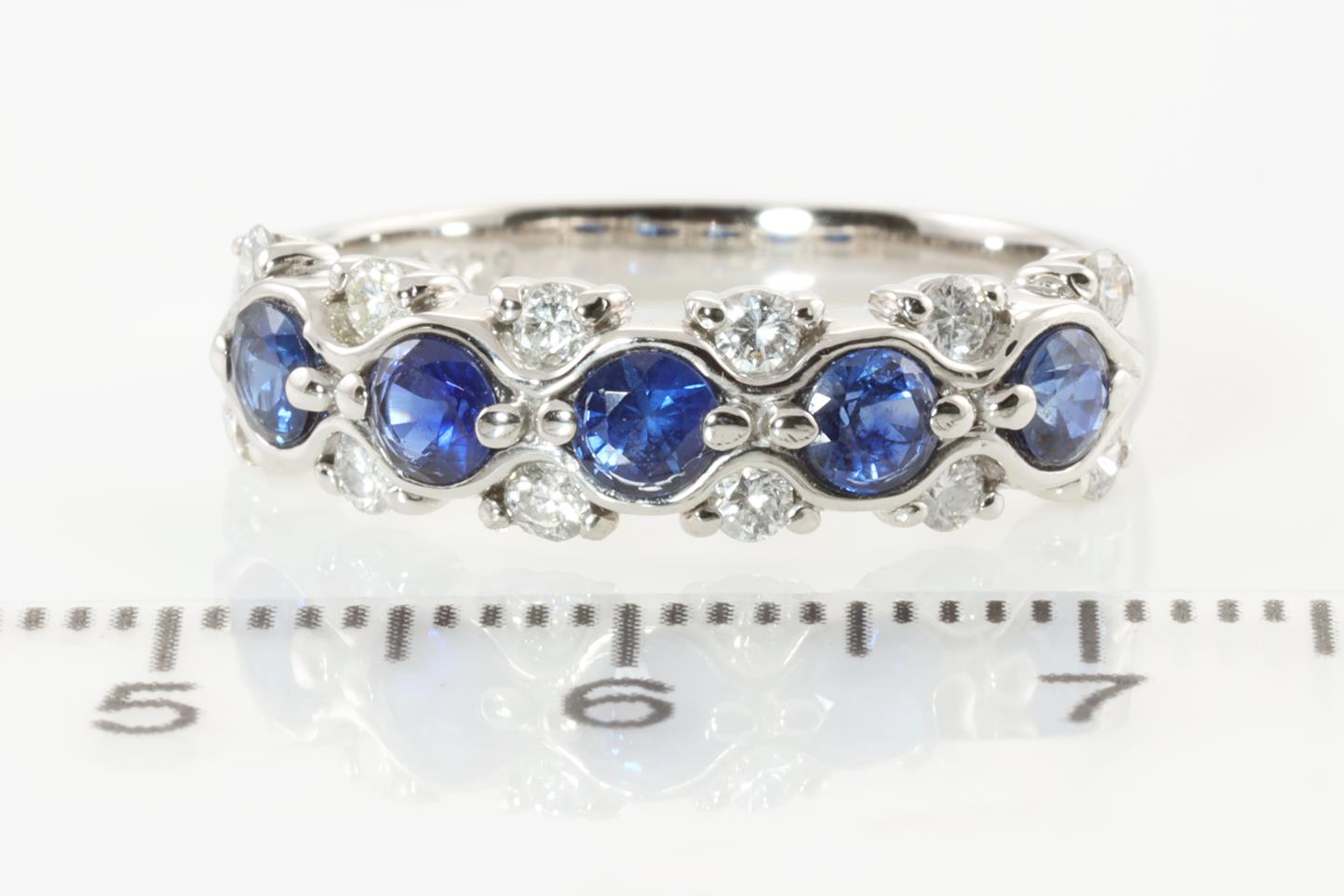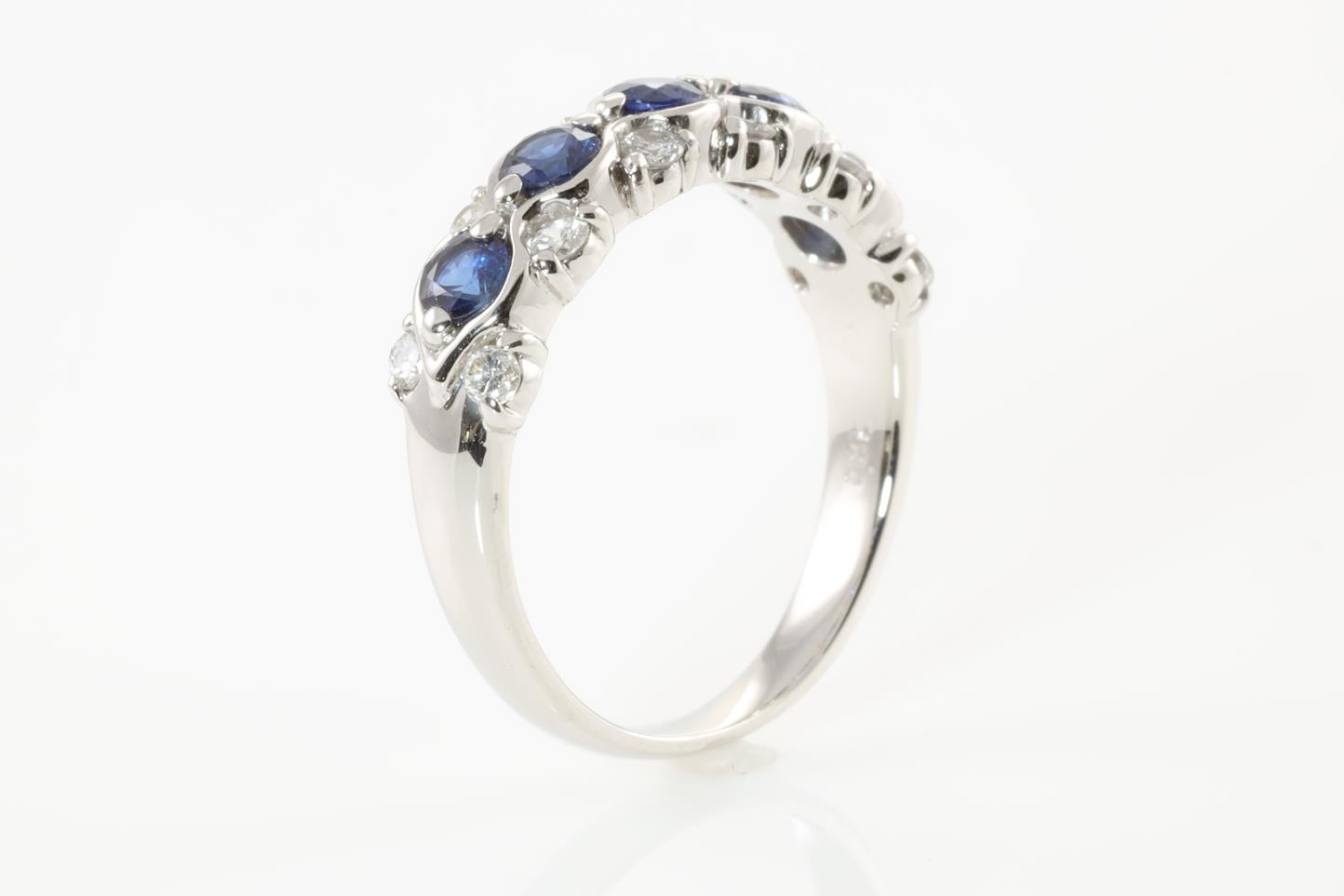 Sapphire and Diamond Ring with round Sapphires totalling 0.79cts and Diamonds totalling 0.36cts (Estimated grading: I-J SI). Platinum. Ring size: O. Weight: 6.5g (Pre-owned).