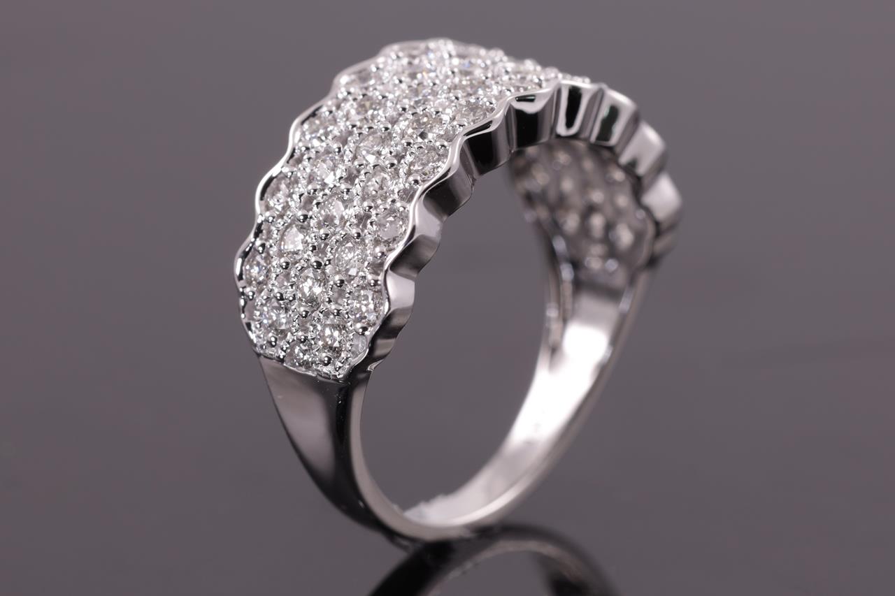 Diamond dress ring with round Diamonds totalling 0.80cts (Estimated grading: H SI). 14ct white gold. Size: M1/2. Weight: 4.1g. (New)