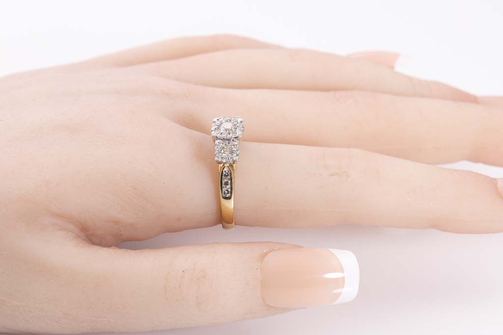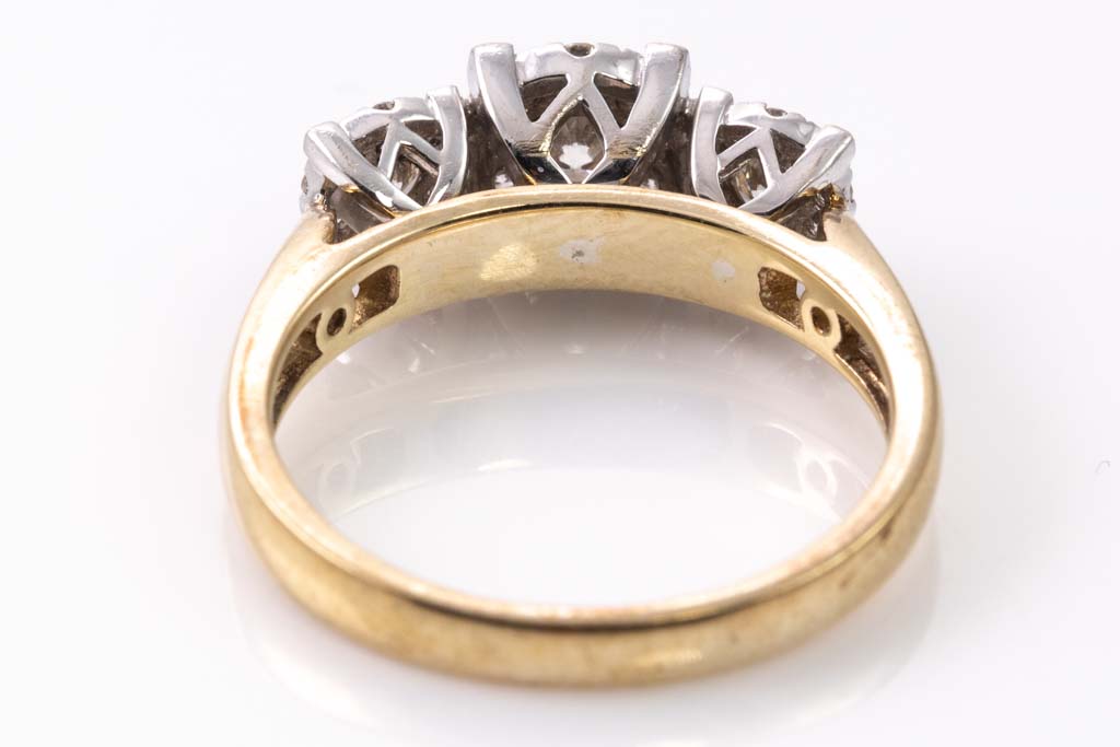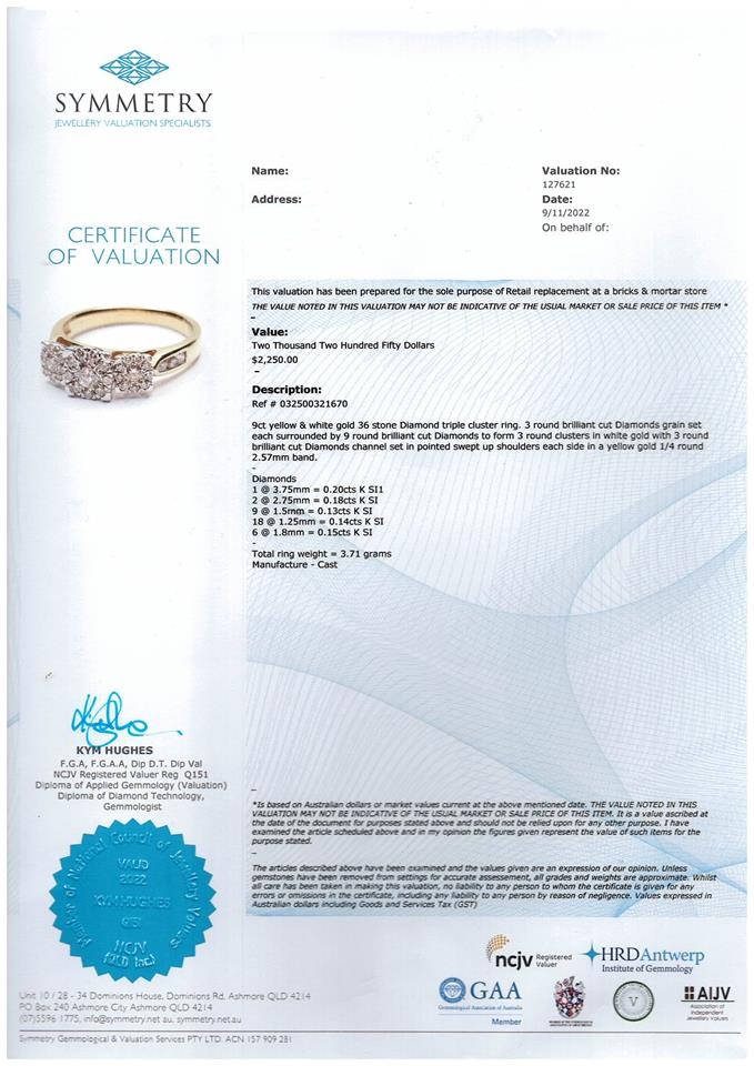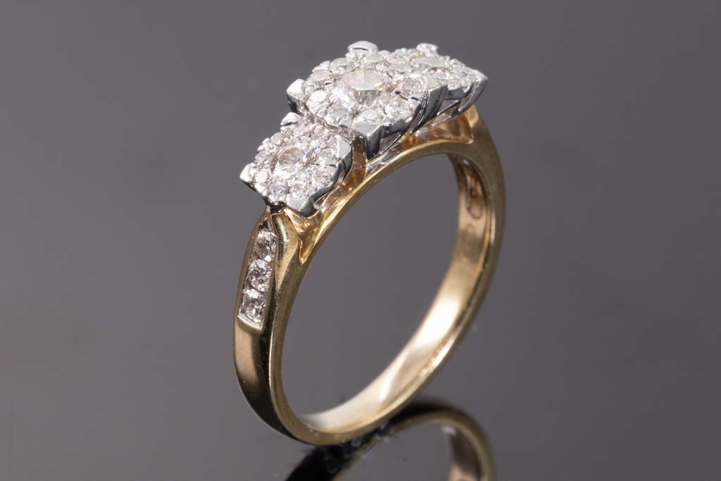 Diamond dress ring with round Diamonds totalling 0.80cts (Estimated grading: K SI). 9ct yellow and white gold. Ring size N. Weight: 3.7g. With Valuation Certificate Ref# 032500321670. (Pre-owned)