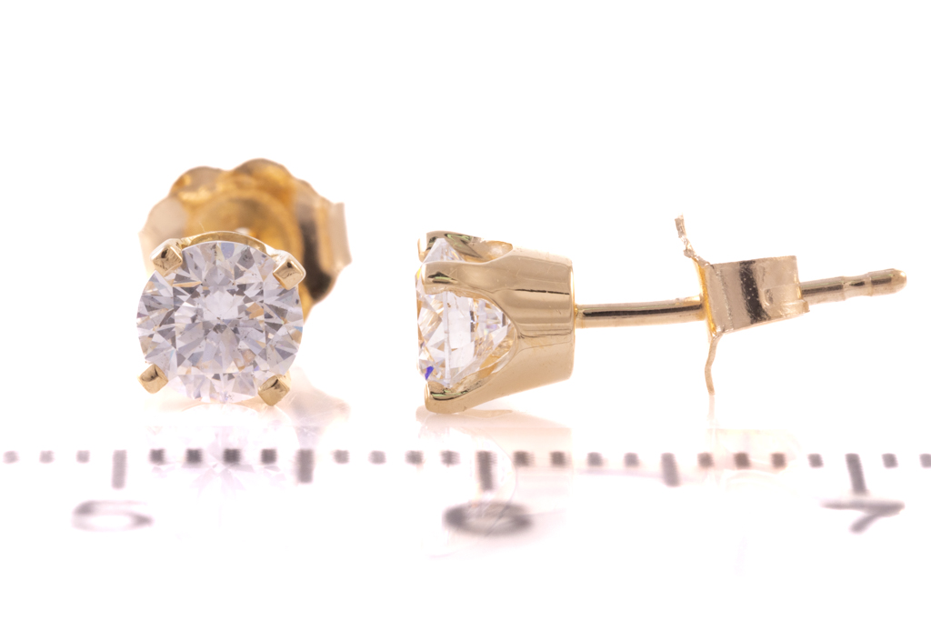 Diamond stud earrings with 2 round brilliant cut Diamonds totalling 0.80ct (both with GIA summary reports graded as D SI2 #2447661834, 6422146111). 18ct yellow gold. Weight: 1.6g. (New)