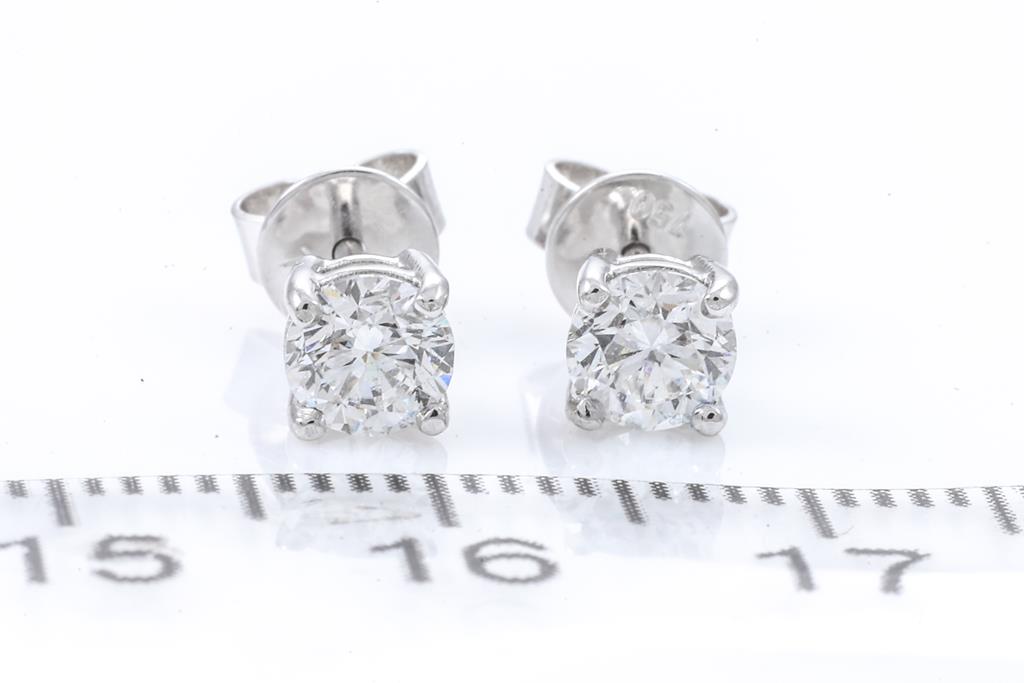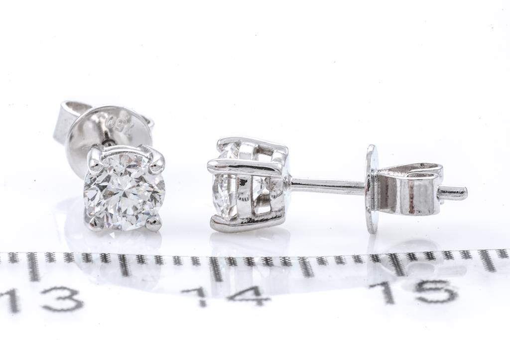Diamond stud earrings with 2 round brilliant cut Diamonds totalling 0.80cts (both with GIA summary reports graded as D VS2 #7432286539, 2427652035). 18ct white gold. Weight:1.7g. (New)
