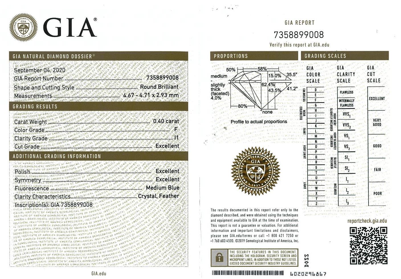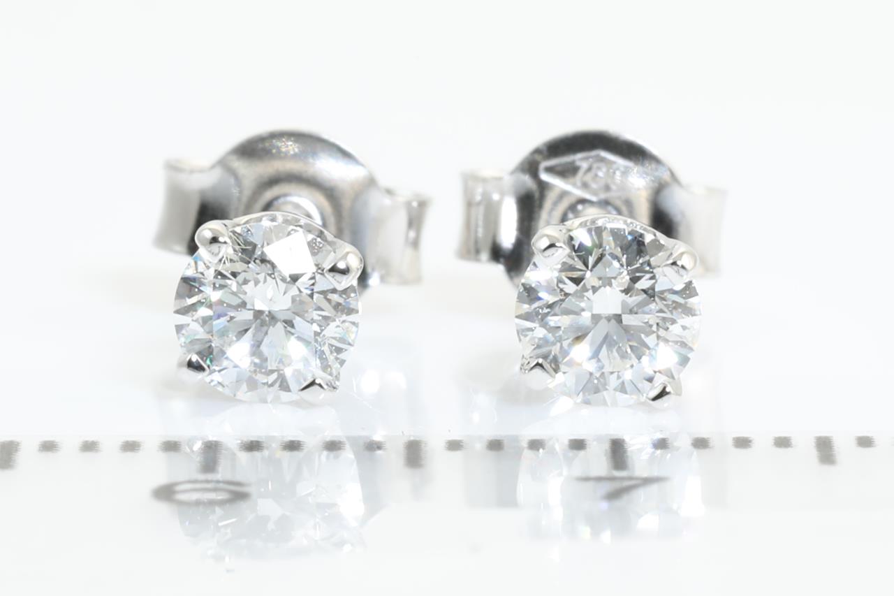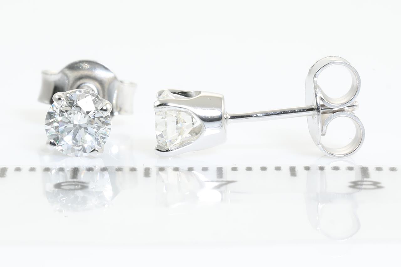 Diamond stud earrings with 2 round brilliant cut Diamonds totalling 0.80cts (with GIA reports graded as F P1 #7358899008, 6362100047). 18ct white gold. Weight: 1.5g (New).