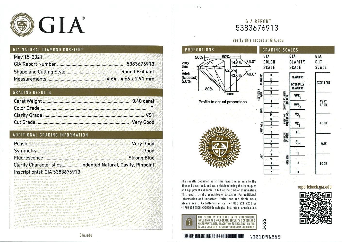 Diamond stud earring with 2 Round Brilliant Cut Diamonds totalling 0.80cts (with GIA report both graded as F VS1-VS2 #5383676913, 2356535631). 18ct white gold. Weight: 1.5g (New)