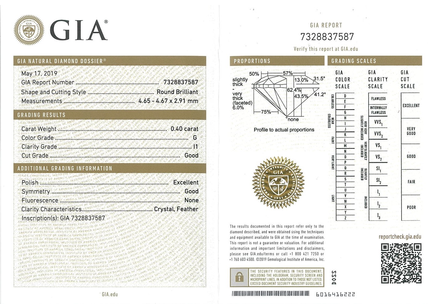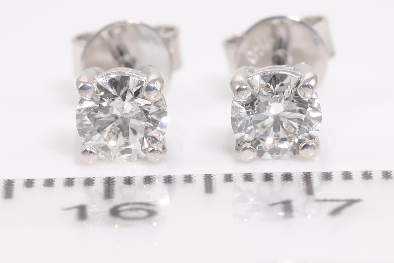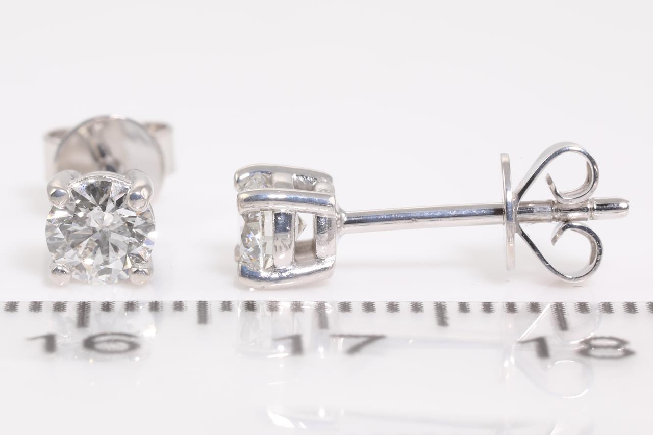 Diamond stud earring with 2 Round Brilliant Cut Diamonds totalling 0.80cts (with GIA report both graded as G P1 #5366547484, 7328837587) set in 18ct white gold. Weight: 1.9g (New)