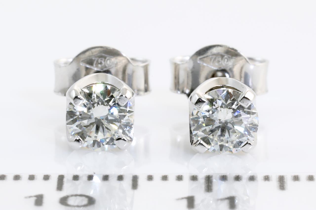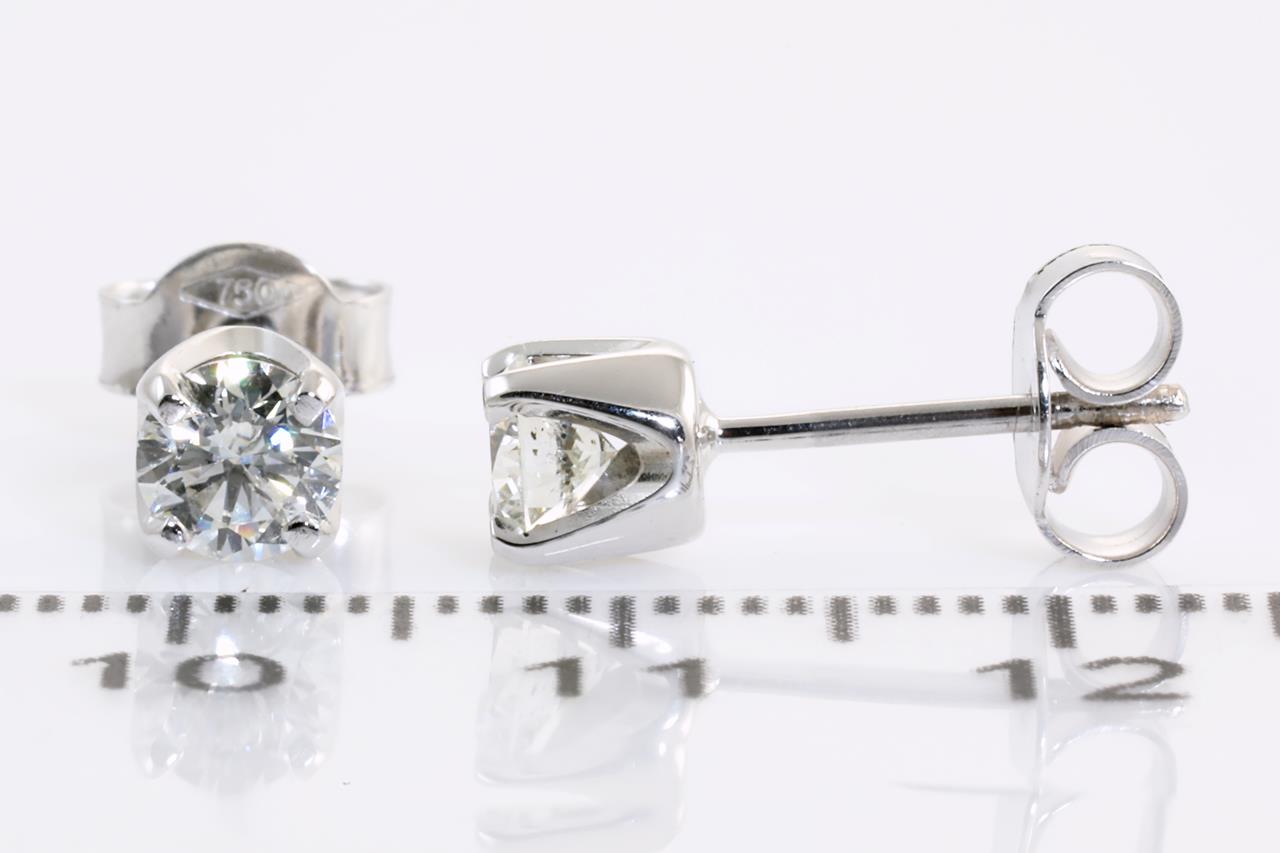 Diamond stud earrings with 2 round brilliant cut Diamonds totalling 0.80cts (with GIA reports graded as H P1 #5353631908, 7316614972). 18ct white gold. Weight: 1.8g. (New).