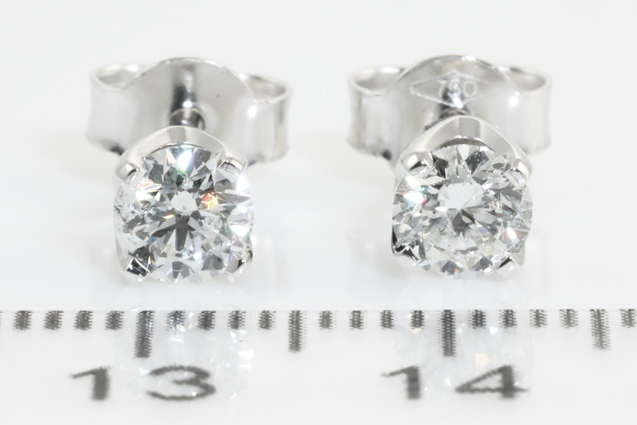 Diamond stud earrings with 2 round brilliant cut Diamonds totalling 0.80cts (Estimated grading: F-G P1). 18ct white gold. Weight: 1.6g. (New).