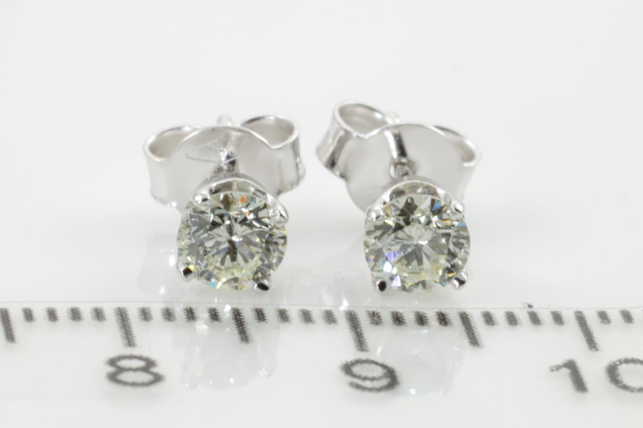 Diamond stud earrings with 2 round brilliant cut Diamonds totalling 0.80cts (Estimated grading: J-K SI). 18ct white gold. Weight: 1.5g. (New).