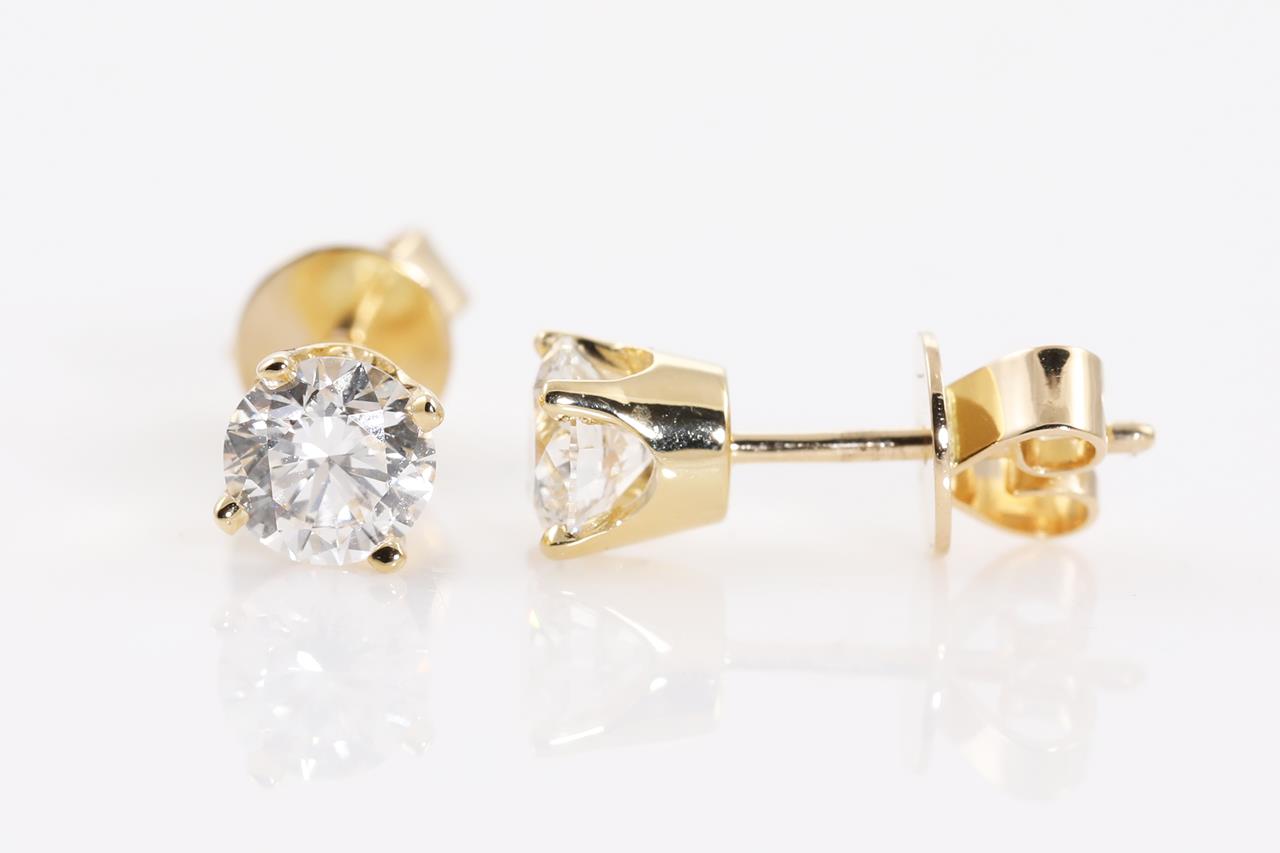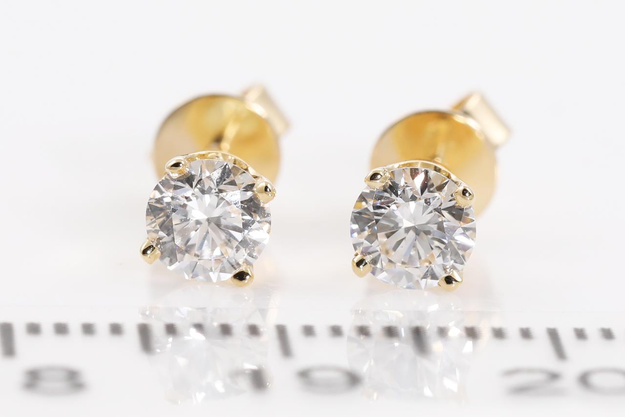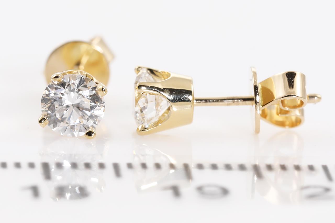 Diamond stud earrings with 2 round brilliant cut Diamonds totalling 0.80cts (both with GIA summary reports graded as D SI1 #7411249717, 2417175109). 18ct yellow gold. Weight: 1.5g. (New)