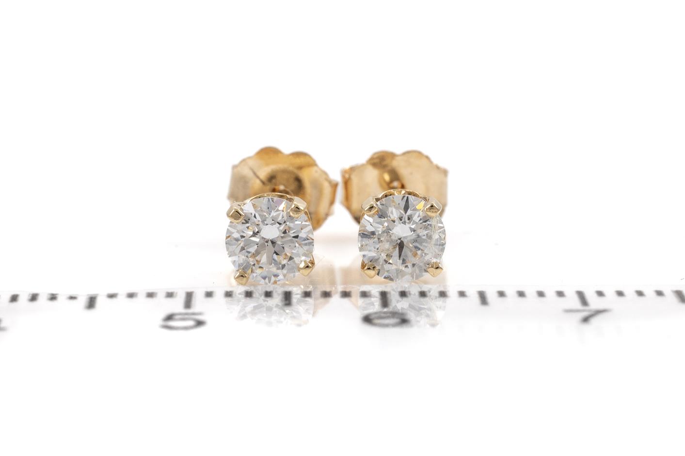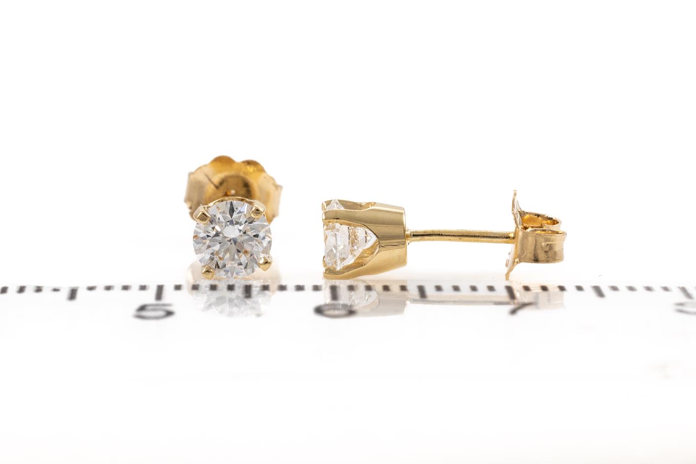 Diamond stud earrings with 2 round brilliant cut Diamonds totalling 0.80cts (with GIA summary report & GIA Diamond dossier report both graded as D SI1 #3415306444, 6452602298) 18ct yellow gold. Weight: 1.2g (New)