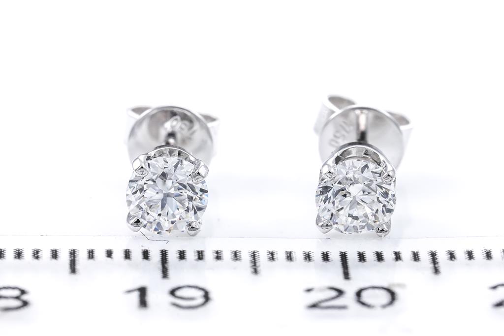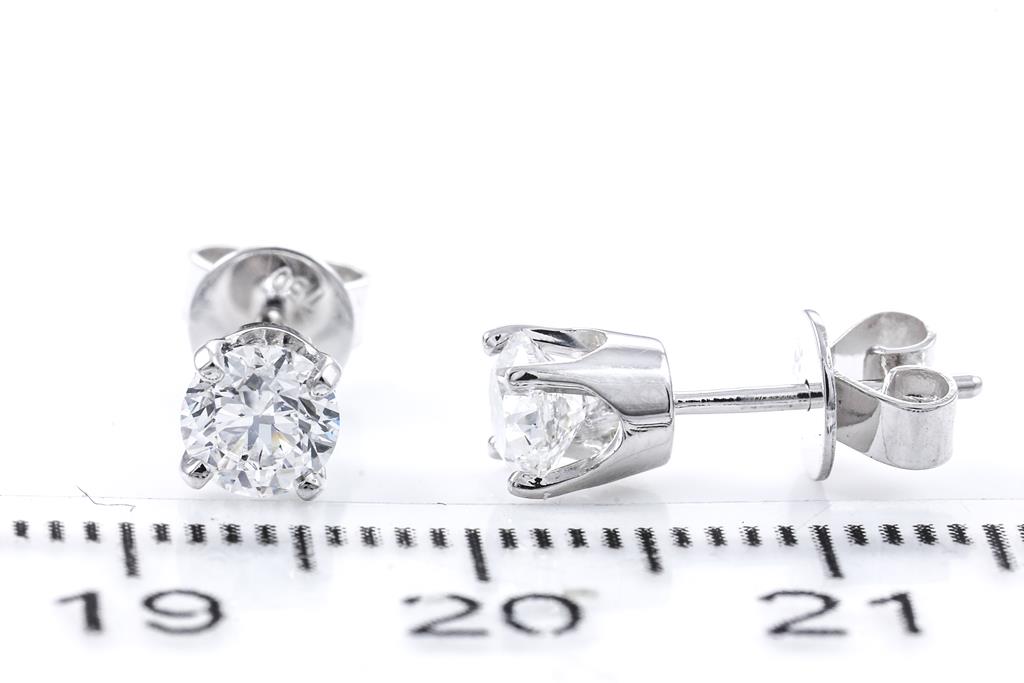 Diamond stud earrings with 2 round brilliant cut Diamonds totalling 0.80cts (both with GIA summary reports graded as D VS1 & D VS2 #2434099154, 2444151538). 18ct white gold. Weight:1.5g. (New)