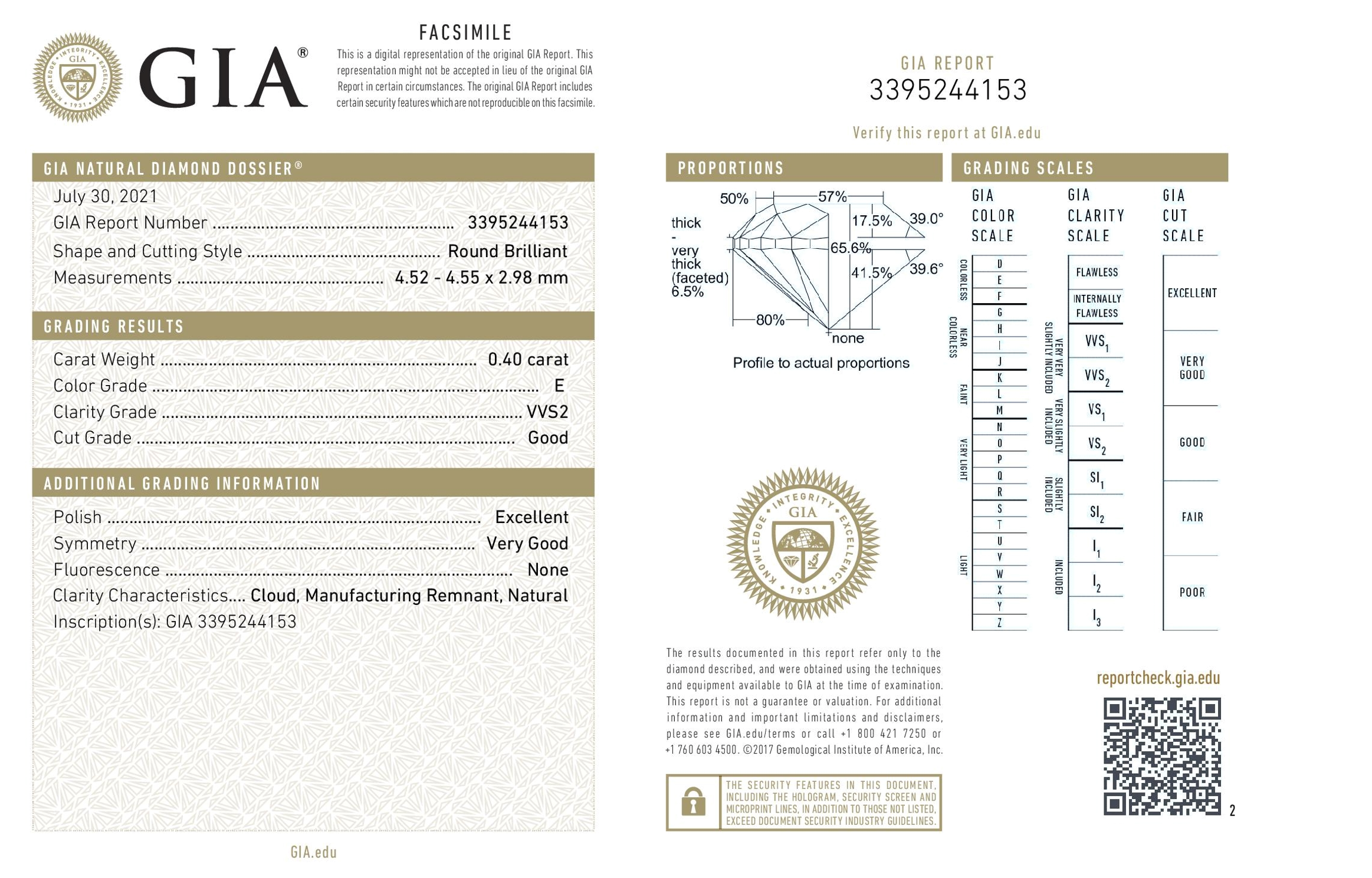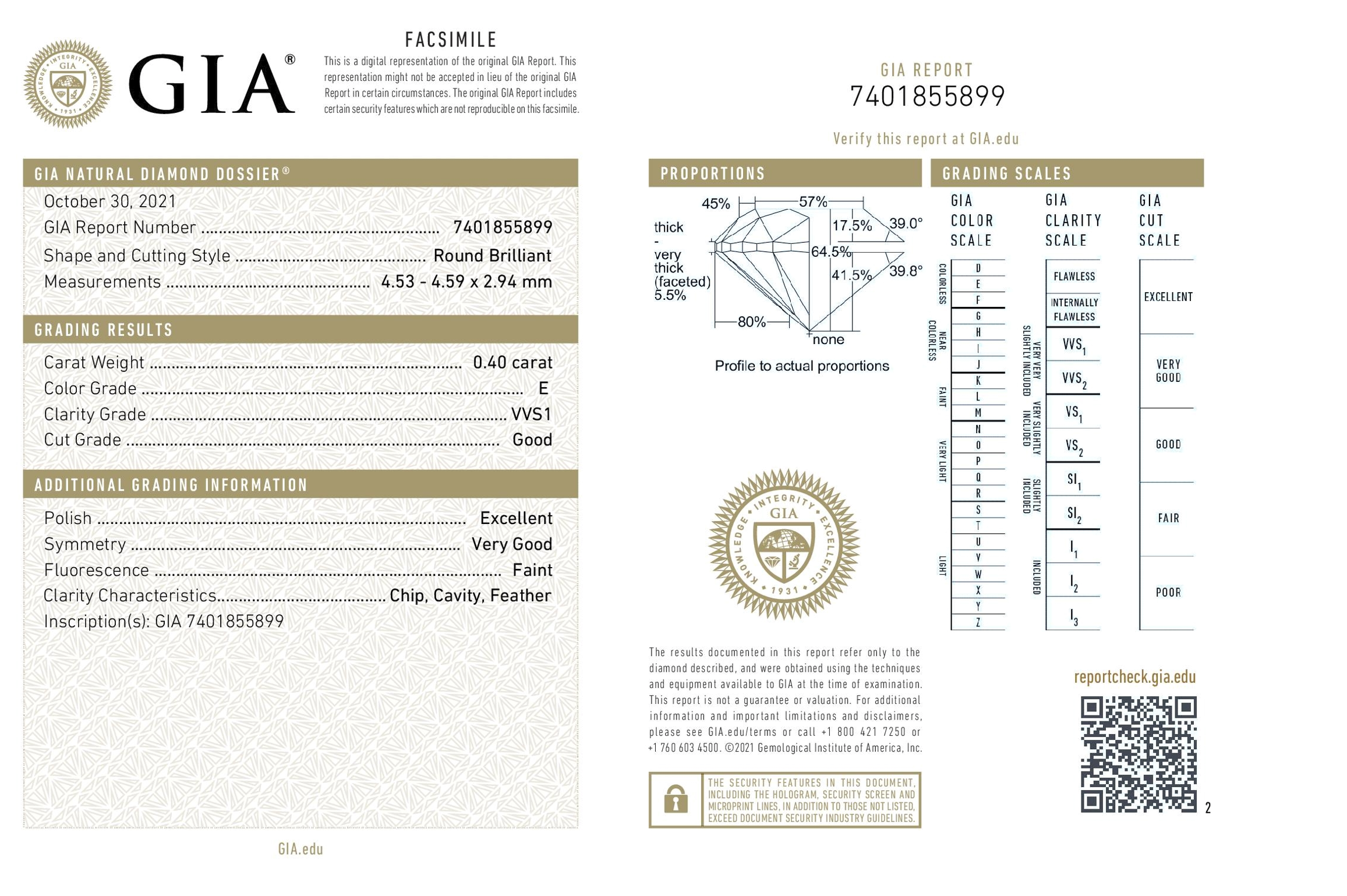 Diamond Stud Earrings with 2 round brilliant cut Diamonds totalling 0.80cts (both with GIA summary reports graded as E VVS1 and E VVS2# 7401855899, 3395244153). 18ct white gold. Weight: 1.4g. (New)
