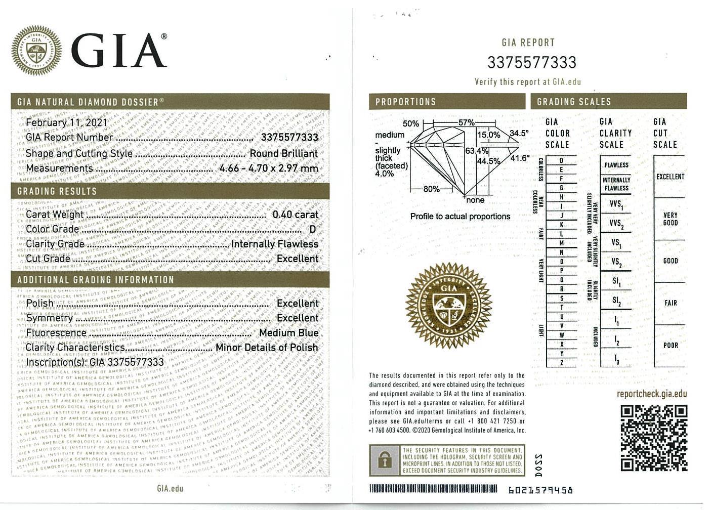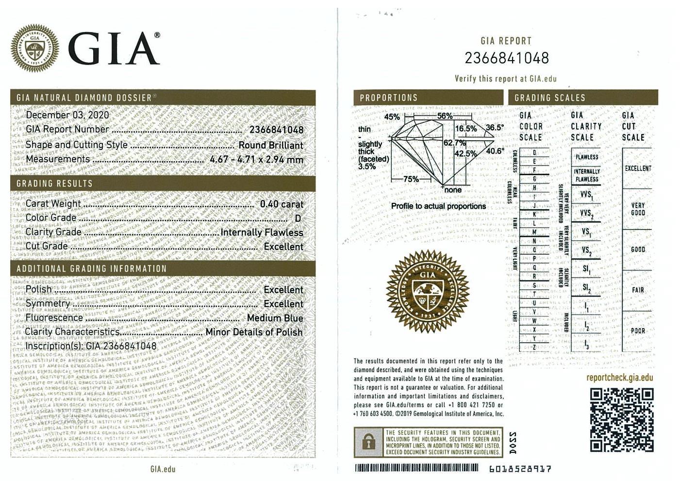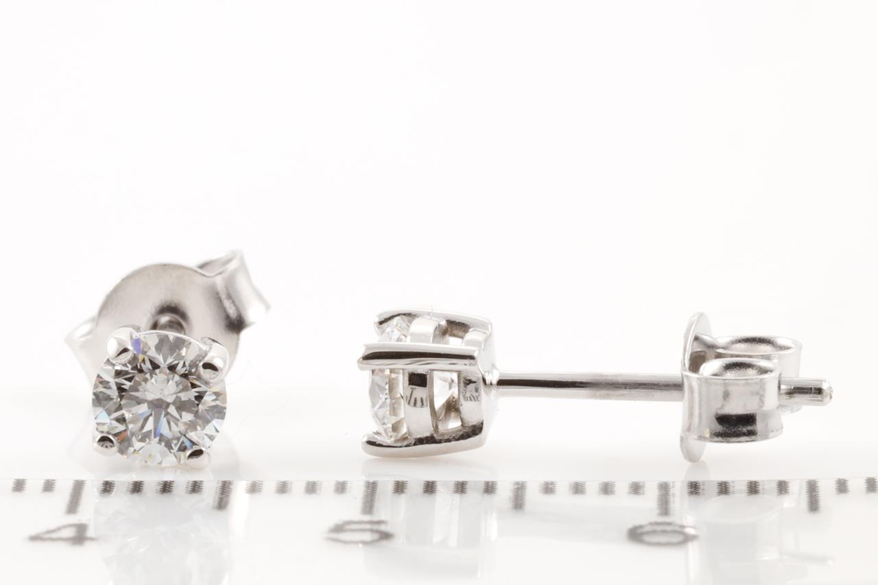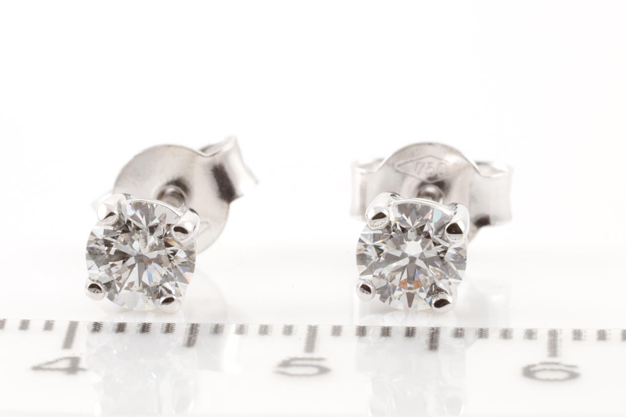 Diamond stud earrings with 2 round brilliant cut Diamonds totalling 0.80cts (Both with GIA summary reports graded as D IF #2366841048, 3375577333). 18ct white gold. Weight: 1.8g. (New)