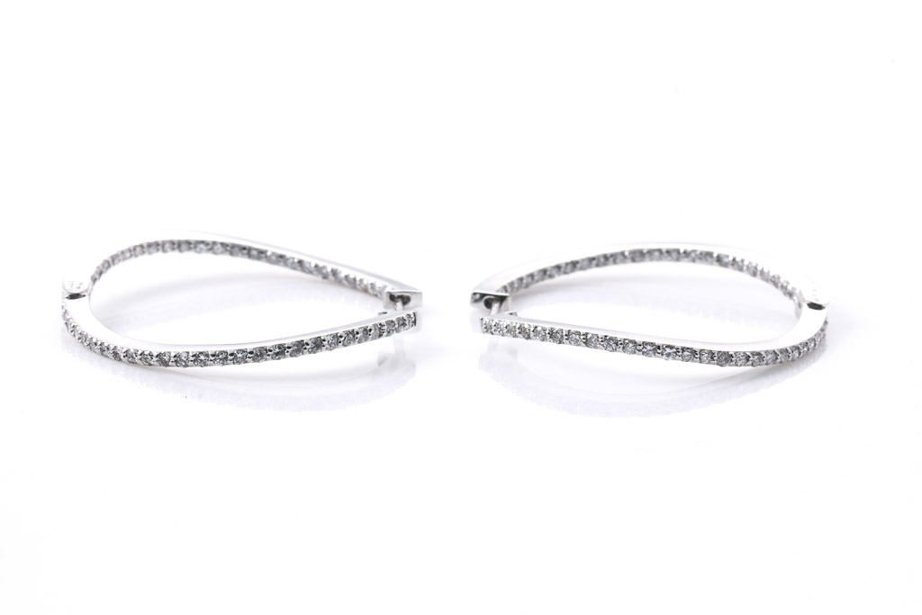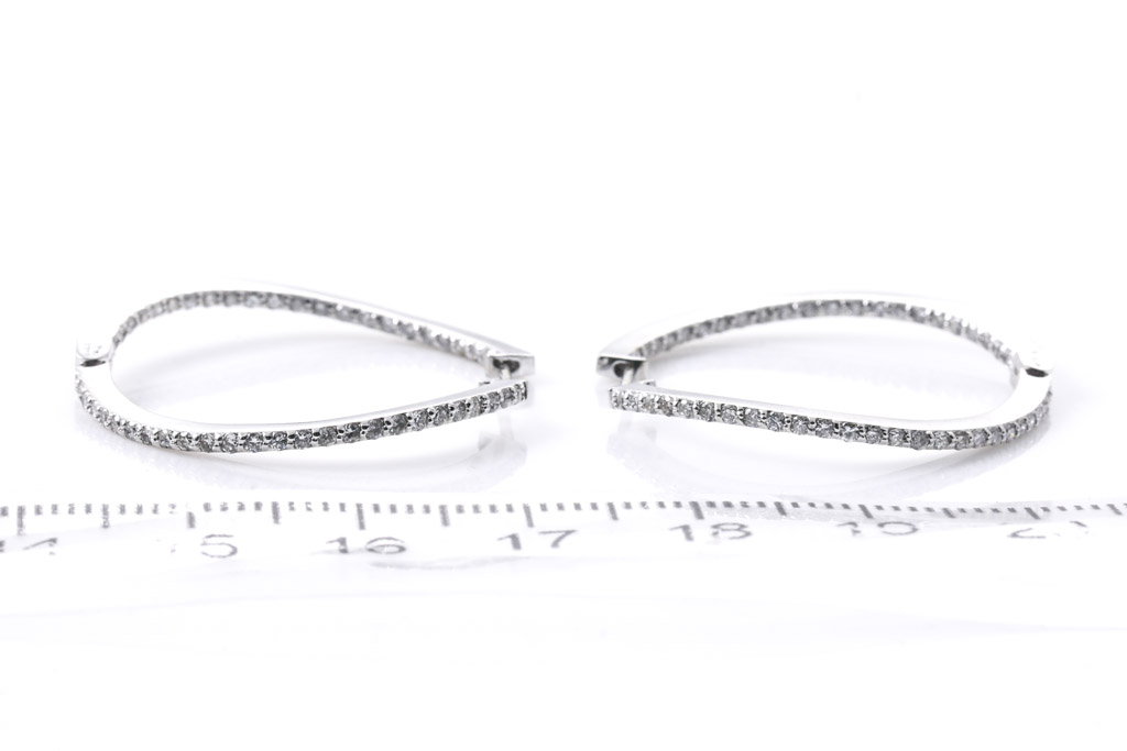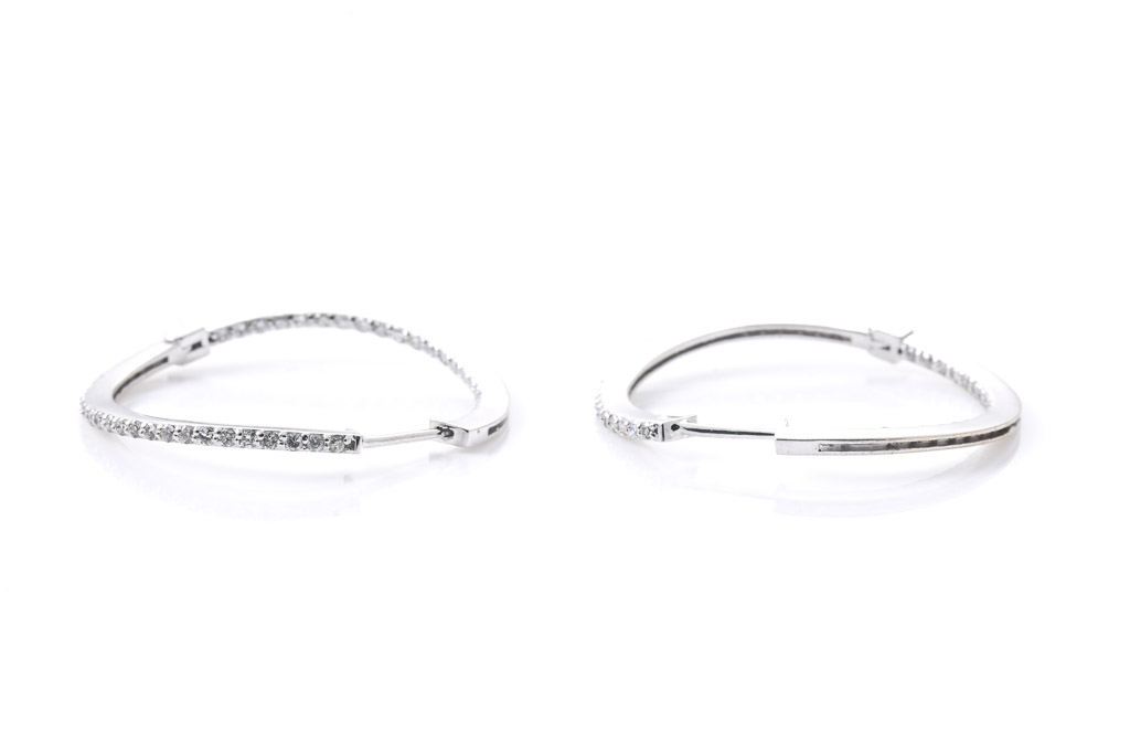 Diamond hoop earrings with round Diamonds totalling 0.80cts (Estimated grading: H P1-2). 18ct white gold. Back of the hoop has the Diamonds set inside the hoop Weight: 5.6g. (Pre-owned)