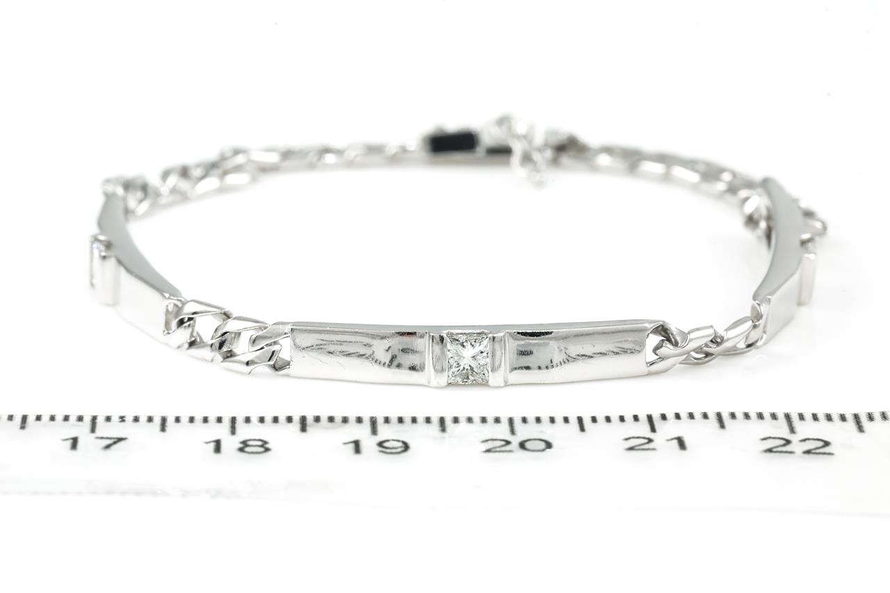 Diamond Bracelet with princess cut Diamonds totalling 0.81cts (Estimated grading: H-I SI). Platinum. Length: 19cm. Weight: 19.0g (Pre-owned)