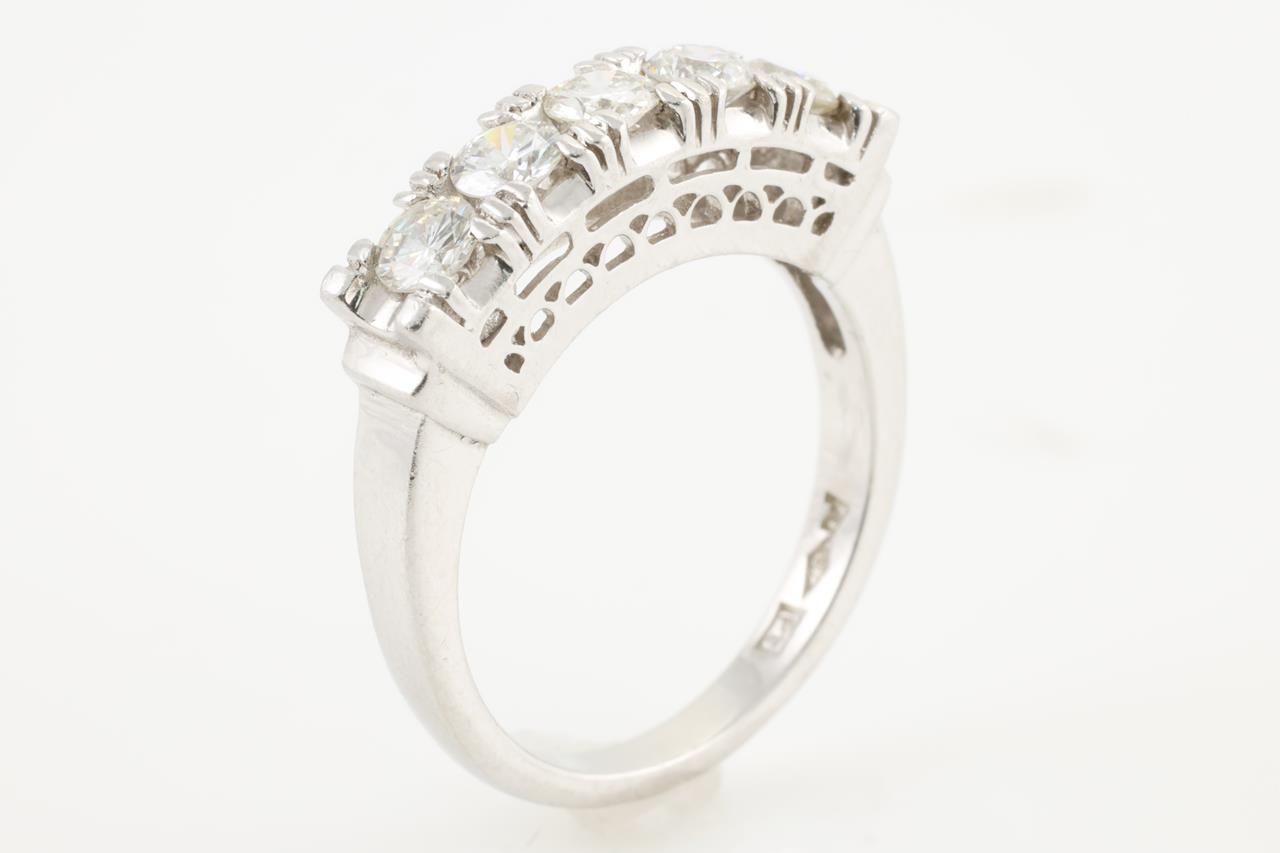 Diamond eternity ring with 5 round Diamonds totalling 0.81cts (Estimated grading: H VS). Platinum. Ring size: L1/2. Weight: 6.9g (Pre-owned)
