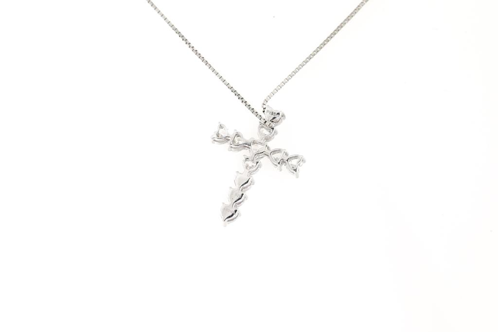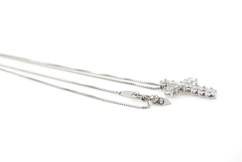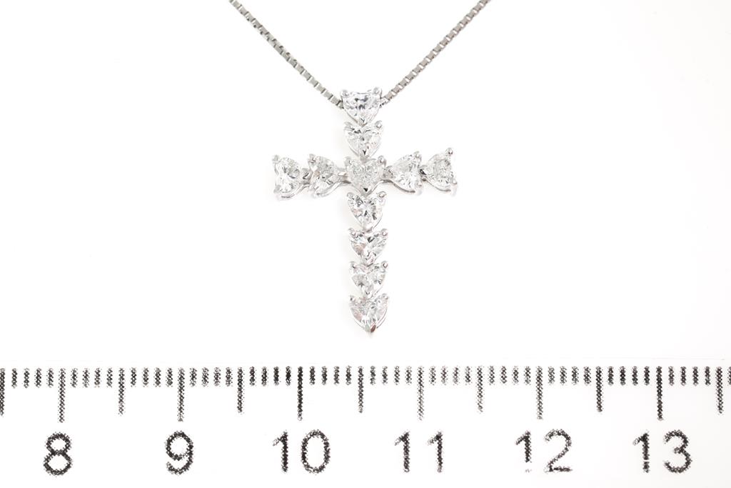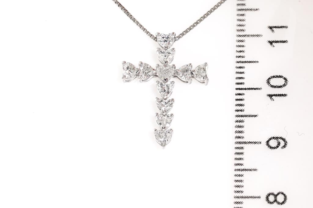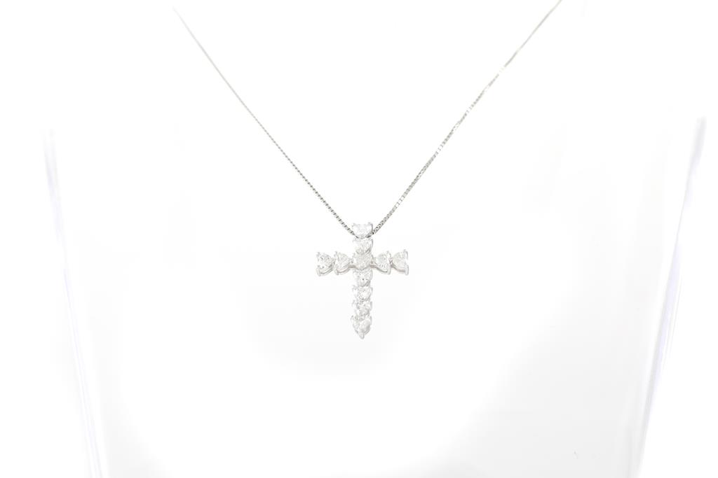 Diamond cross pendant with heart shape Diamonds totalling 0.82cts (Estimated grading: H-I SI). Platinum with adjustable 45cm chain. Weight: 3.8g. (Pre-owned)