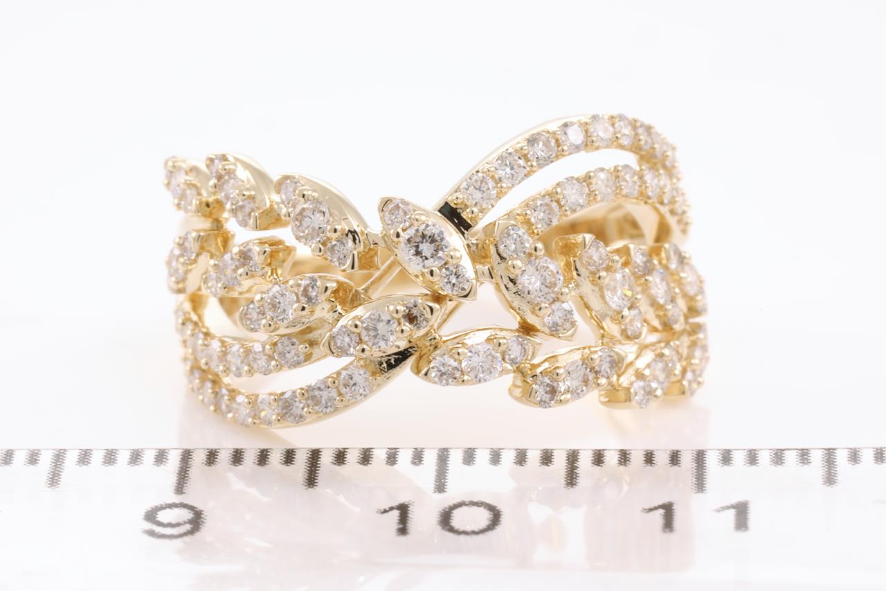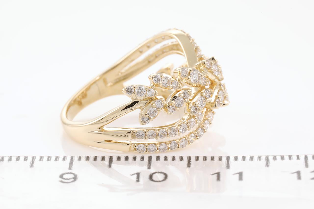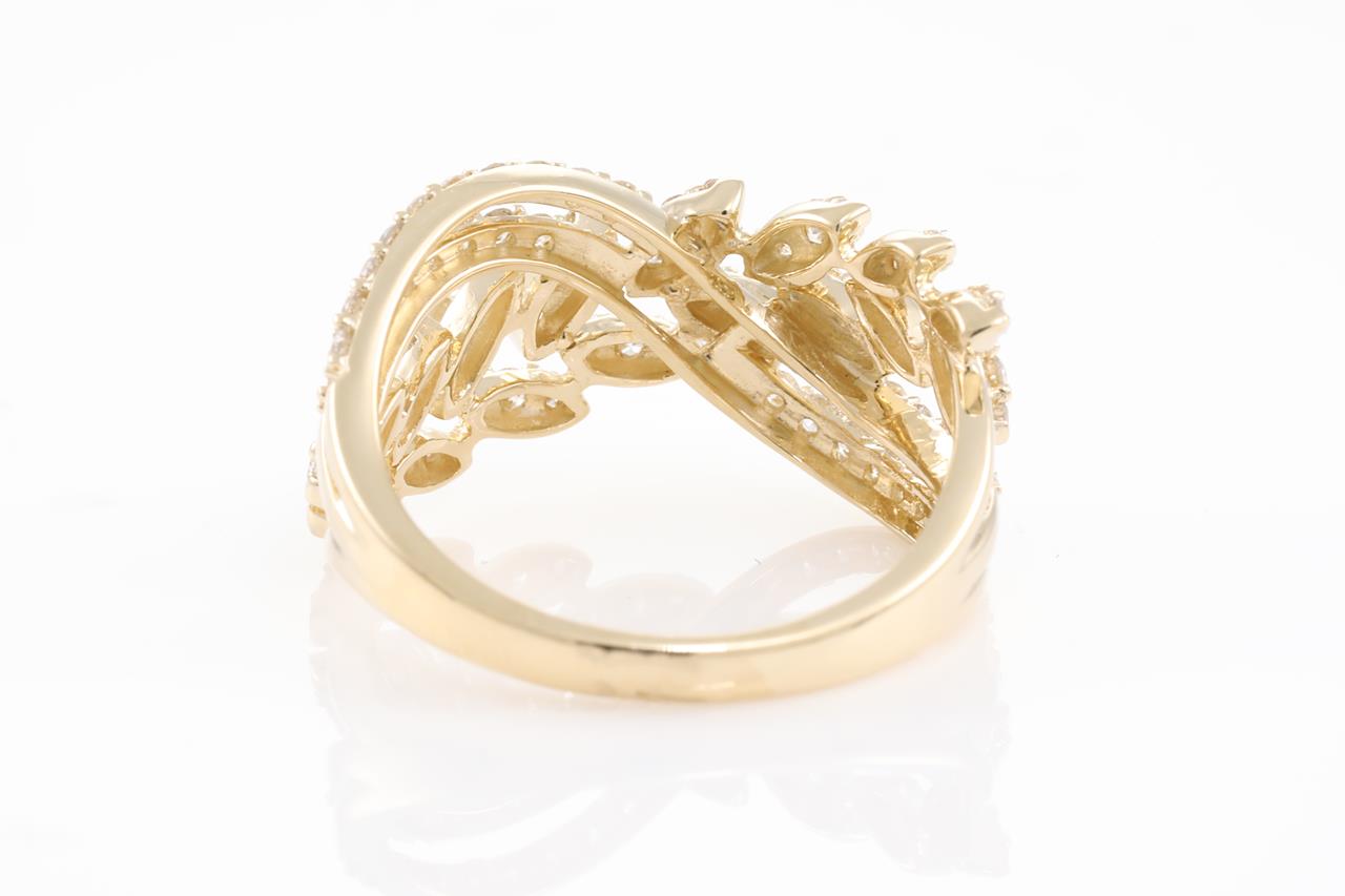 Diamond dress ring with round Diamonds totalling 0.85cts (Estimated grading: H SI). 14ct yellow gold. Size: N - cannot be resized up, down with ring clip. Weight: 4.1g. (New)