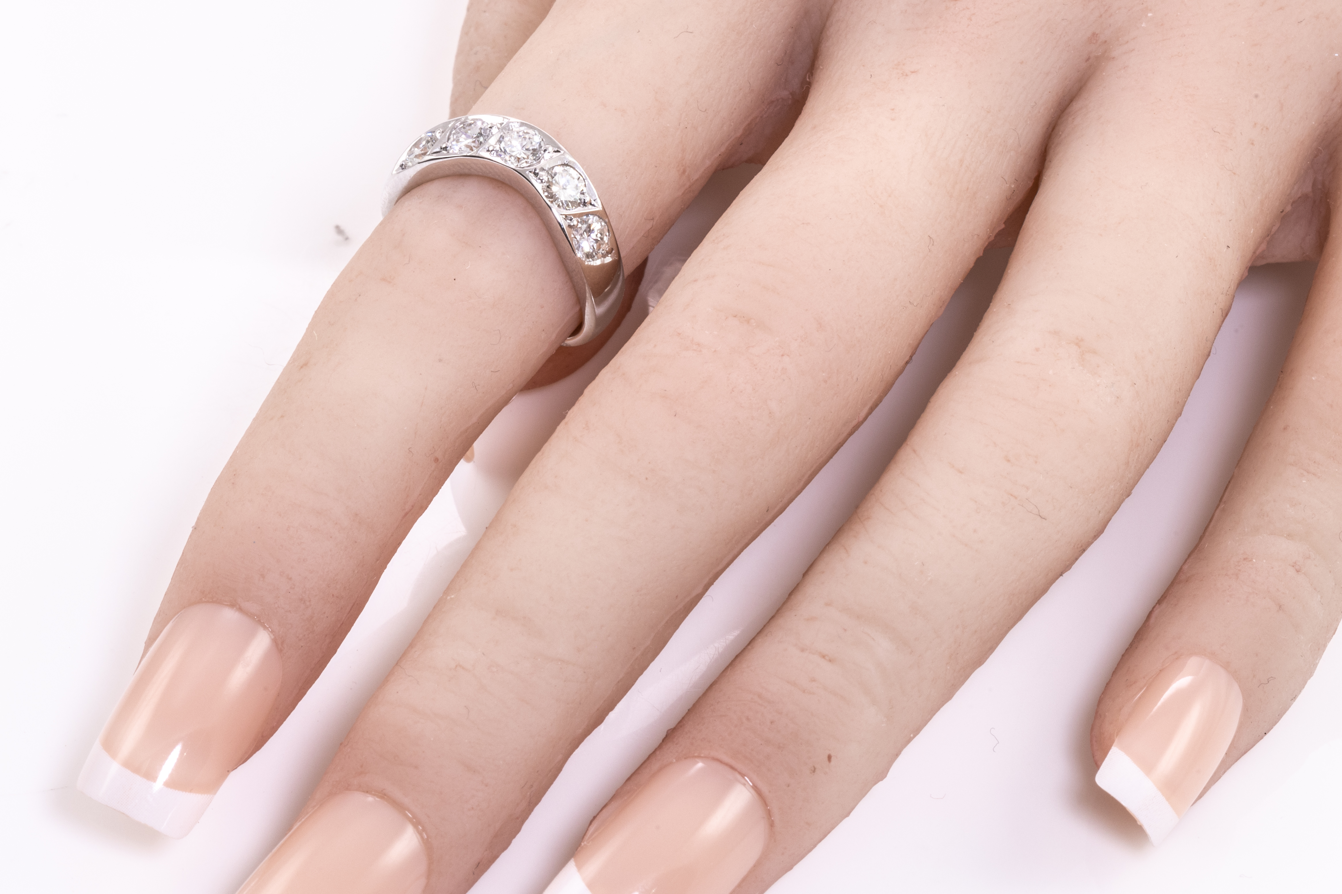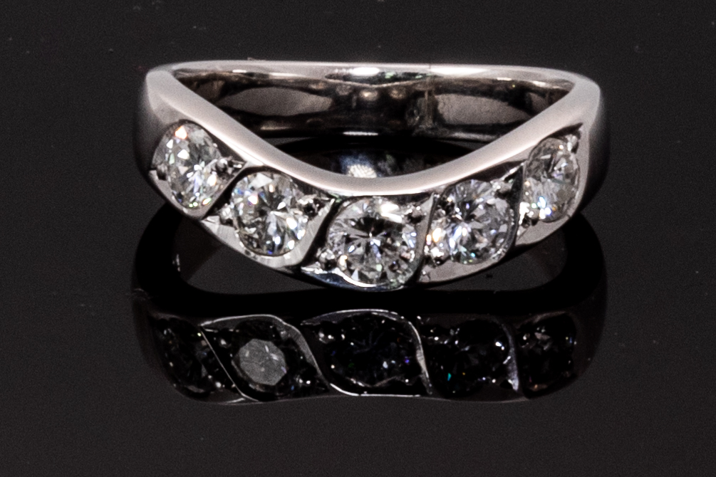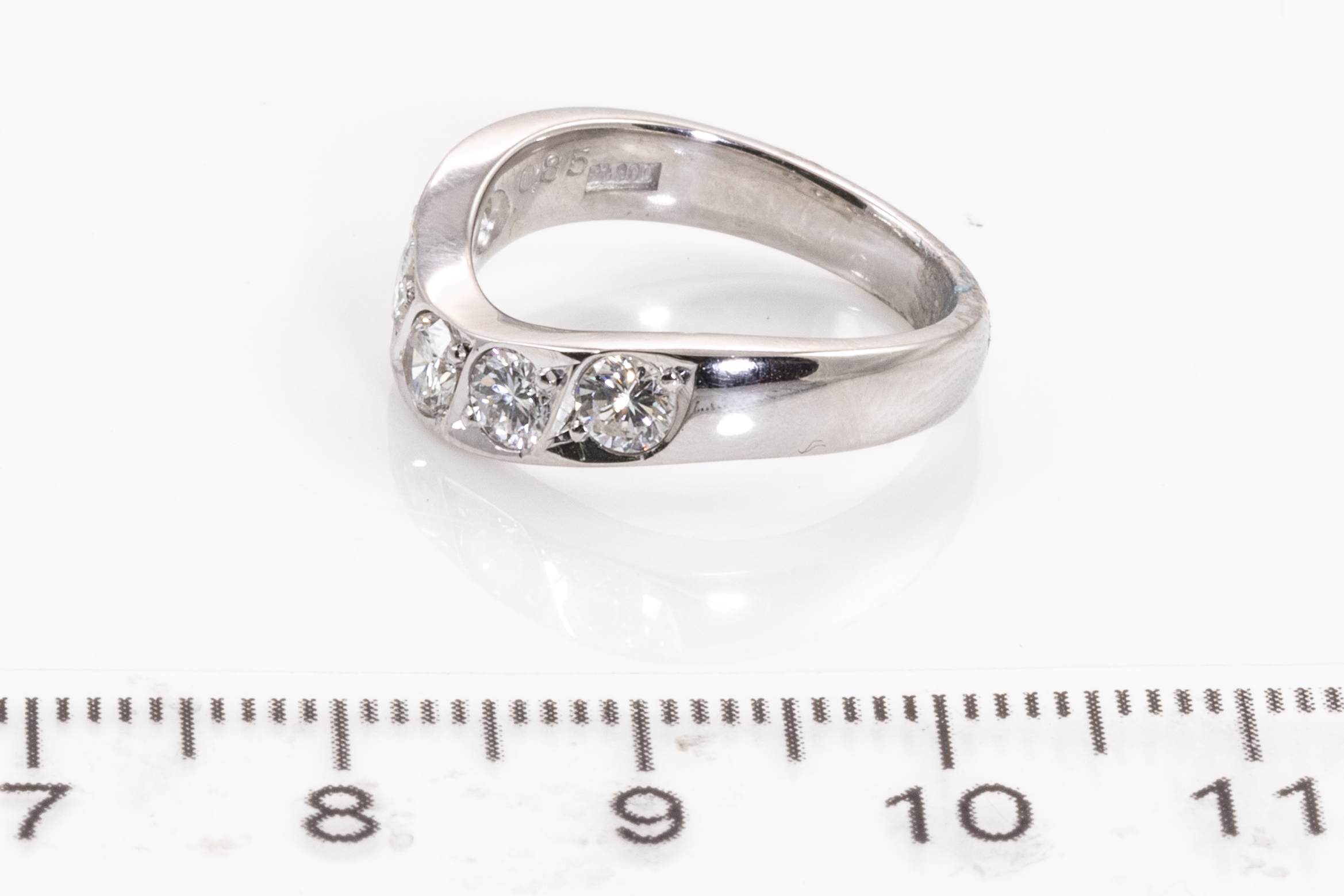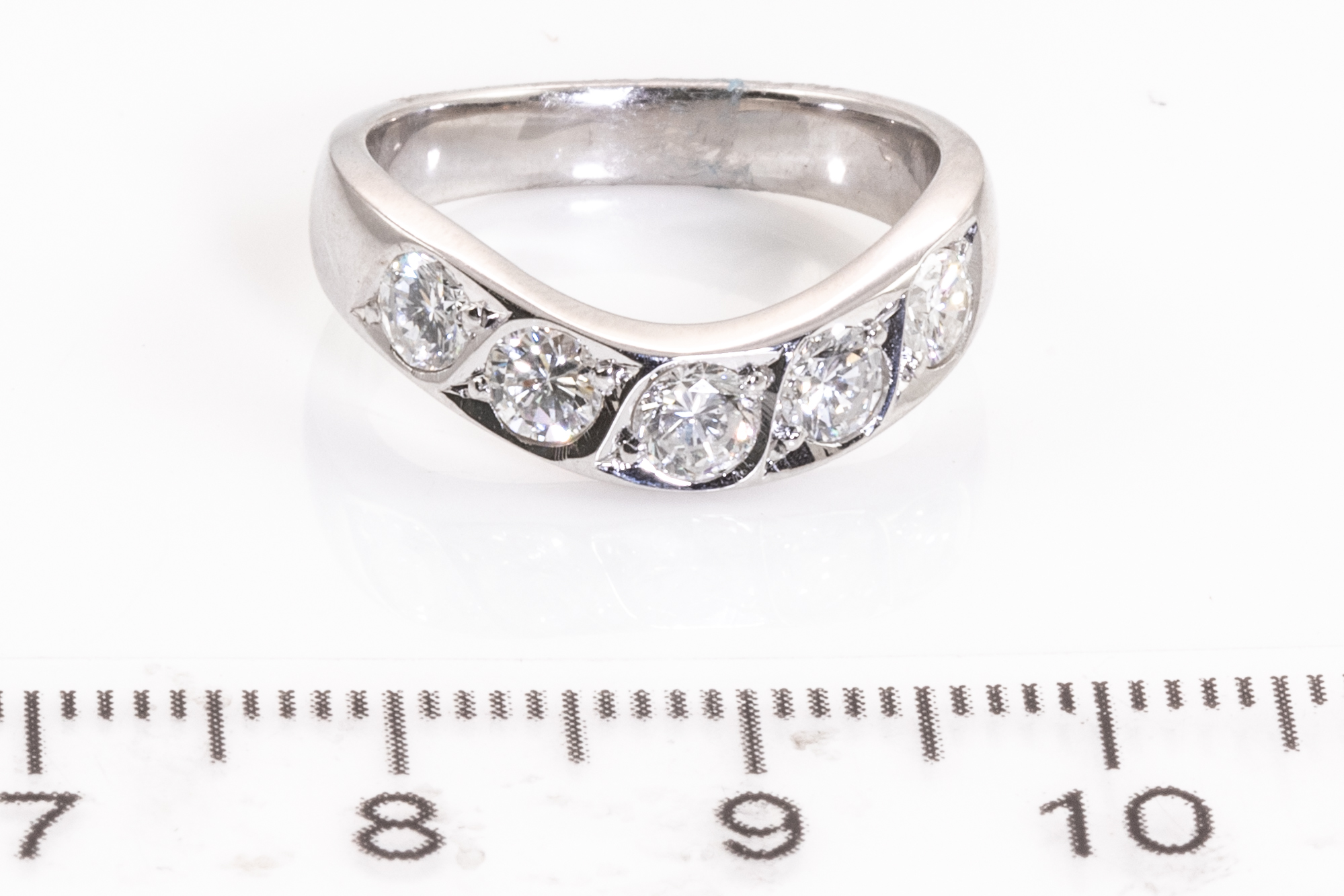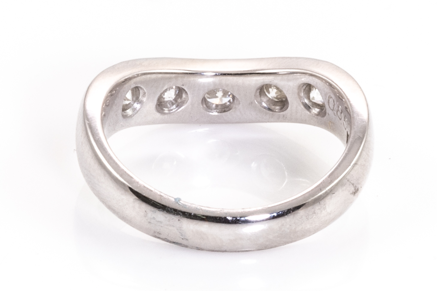 Diamond ring with 5 round Diamonds totalling 0.85cts (Estimated grading: G-H VS-SI). Platinum. Ring size K1/2. Weight: 7.1g (Pre-owned)