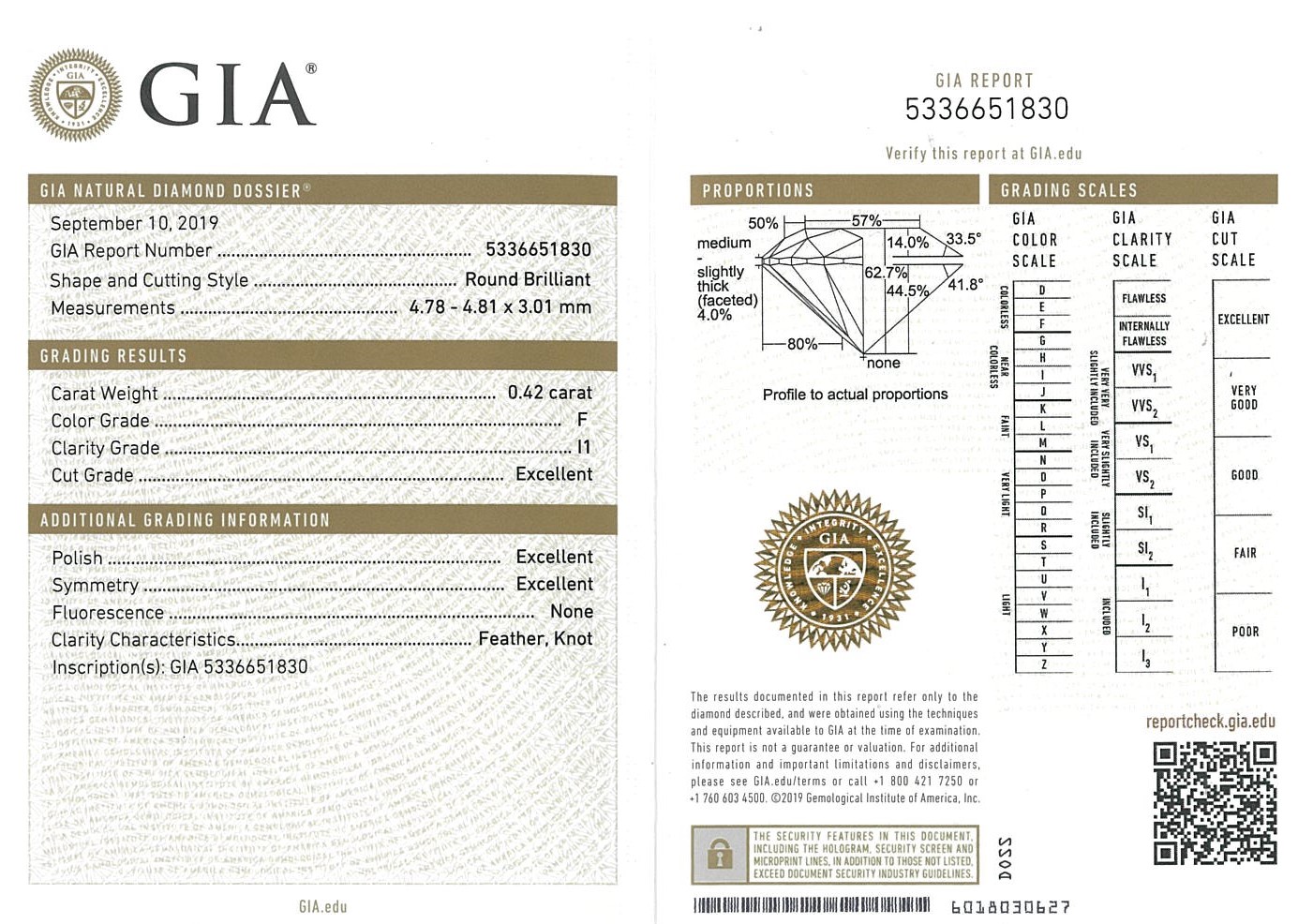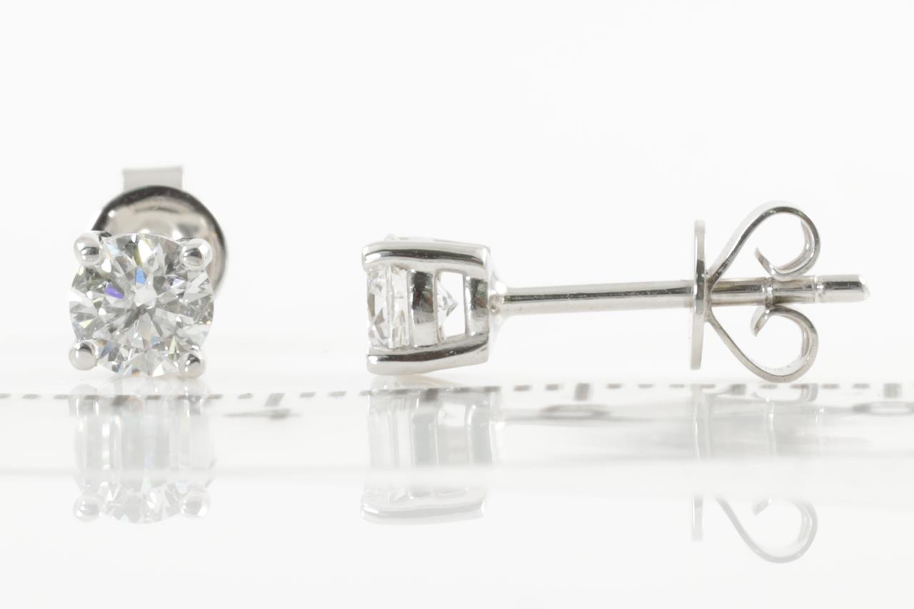Diamond stud earring with 2 Round Brilliant Cut Diamonds totalling 0.85cts (with GIA report both graded as F P1 #5336651830, 7348603006). 18ct white gold. Weight: 1.9g (New)