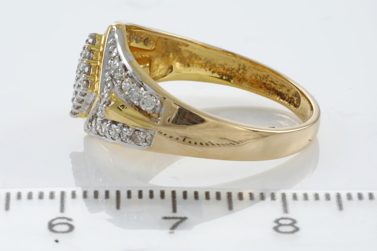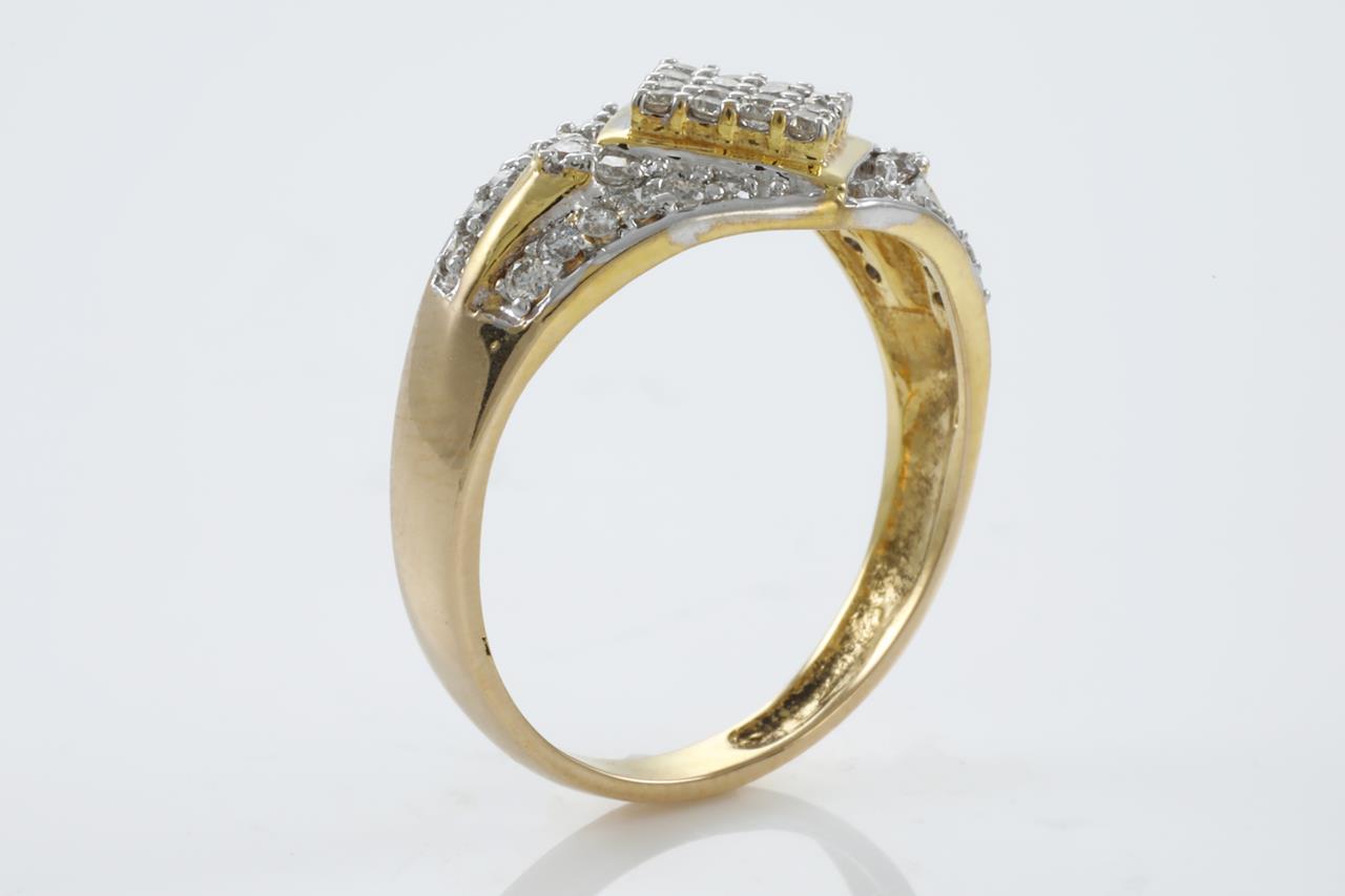 Diamond dress ring with round Diamonds totalling 0.87cts (Estimated grading: H VS-SI). 18ct yellow gold. Ring size R1/2. Weight: 5.0gm (Pre-owned)