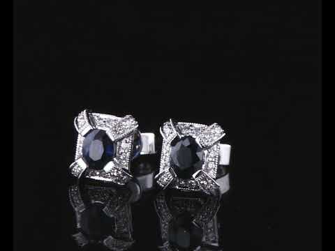 Sapphire and Diamond earrings with oval blue Sapphire totalling 0.87cts and round Diamond totalling 0.25cts. 18ct white gold. Weight: 2.8g. (New)