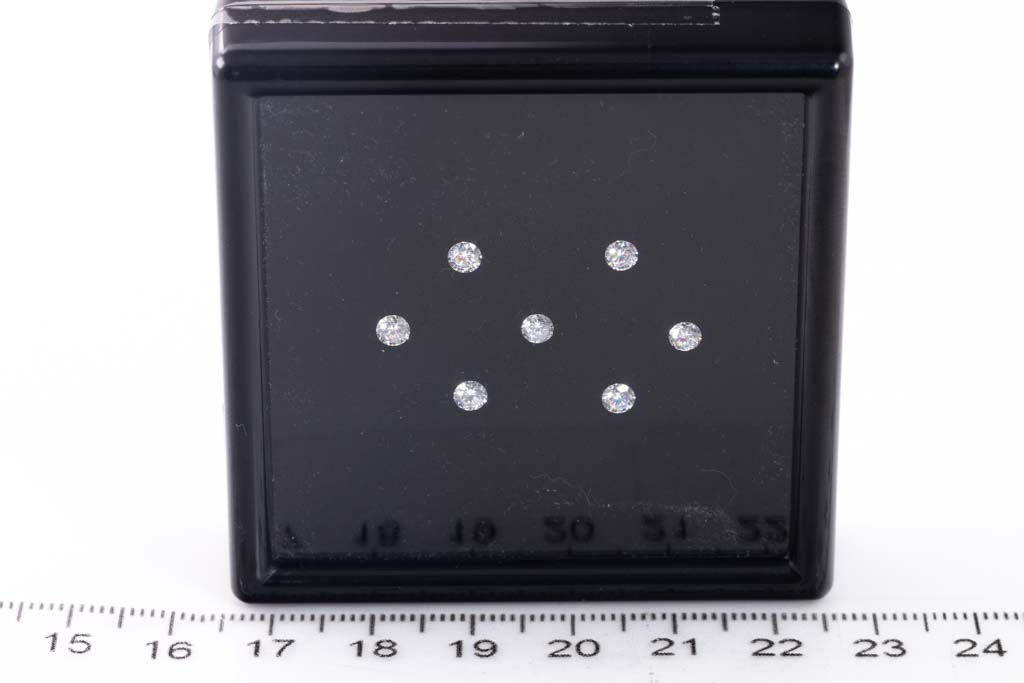 A loose parcel of 7 round brilliant cut Diamonds totalling 0.88cts (Estimated grading: GHI SI). Approximate size: 3.1-3.2mm. (New)