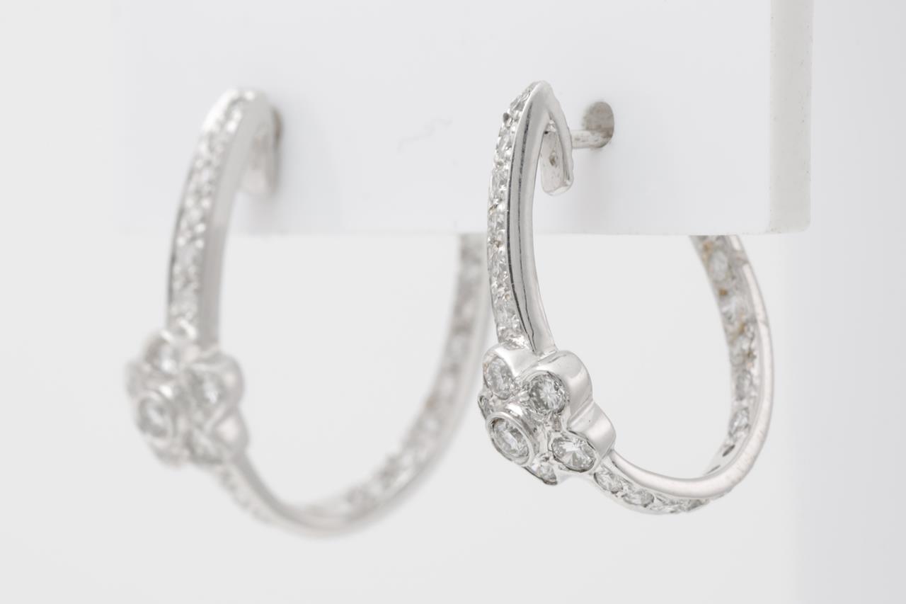 Diamond dress earrings with round Diamonds totalling 0.90cts (Estimated grading: G-H SI). Platinum & 18ct white gold. Weight: 5.2g. (Pre-owned)