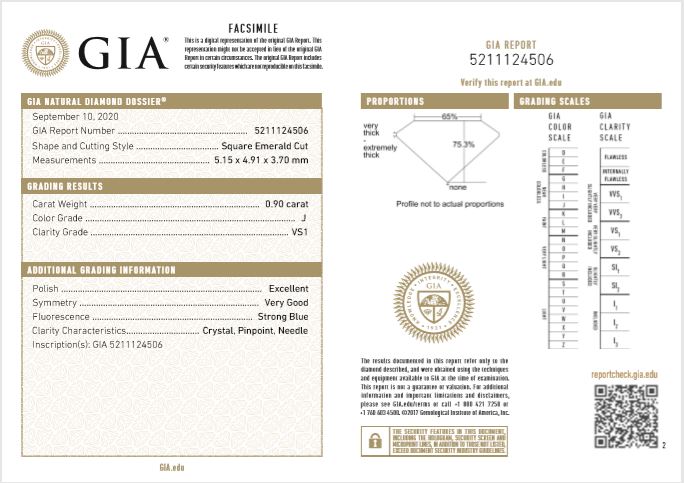 A loose square emerald Diamond of 0.90ct (with GIA report graded as J VS1 #5211124506). (New)
