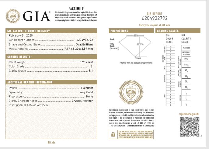 A loose Oval Diamond of 0.90ct (With GIA report graded as E SI1 #6204932792) (New)