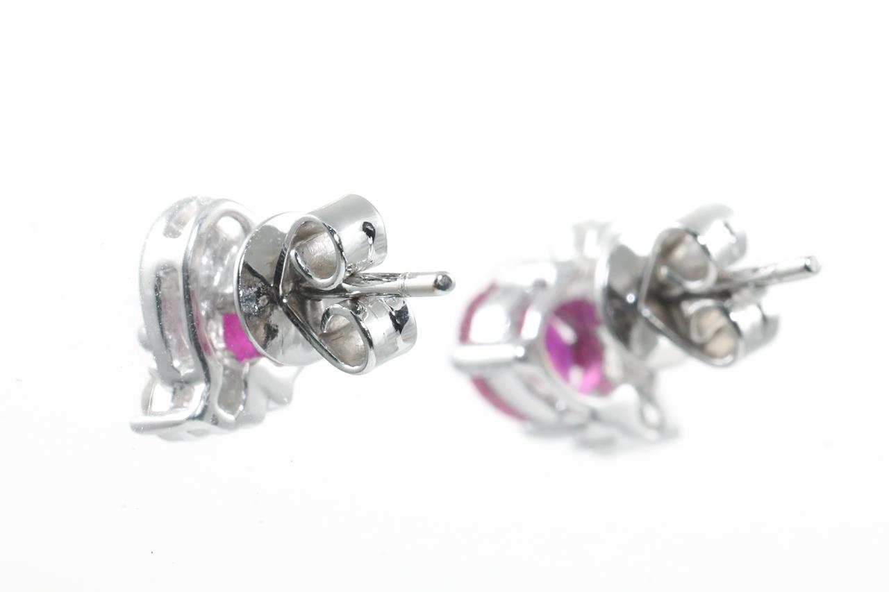 Ruby and Diamond Earrings with 2 oval Rubies totalling 0.90cts and Diamonds totalling 0.10cts. 18ct white gold. Weight: 2.2g. (Pre-owned)