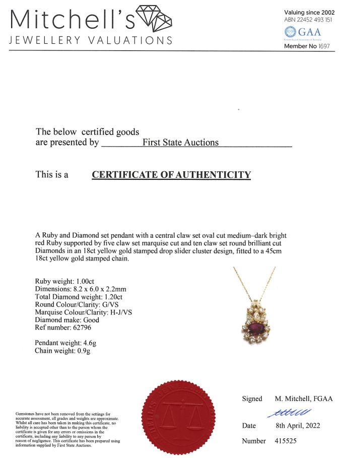 0.90ct Ruby and Diamond Pendant | First State Auctions